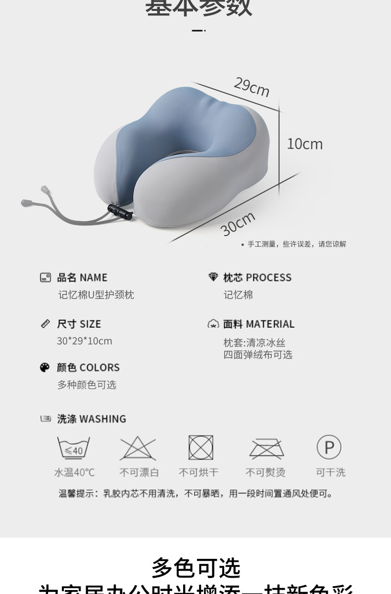 アイスシルクU字枕、低反発U字型ネックピロー、親子頚椎枕、オフィス昼寝枕、収納可能な飛行機枕