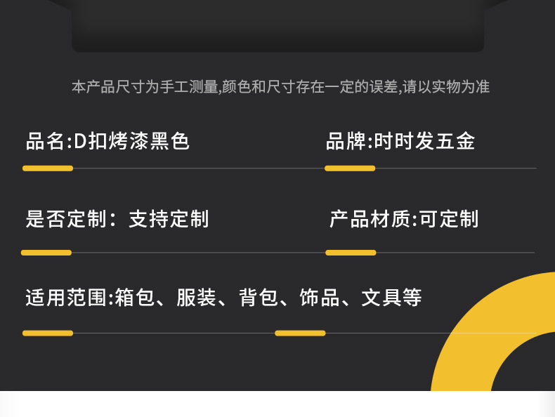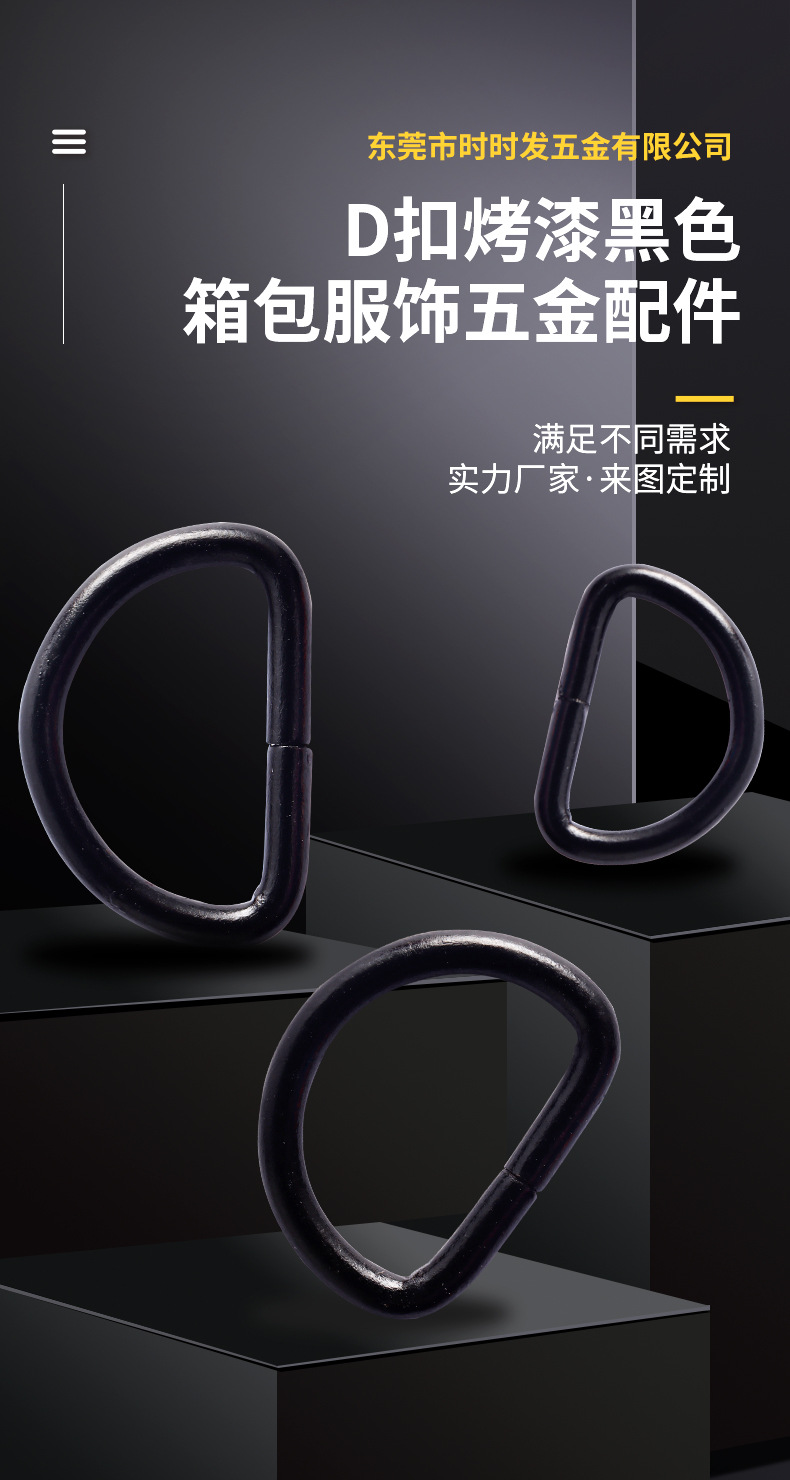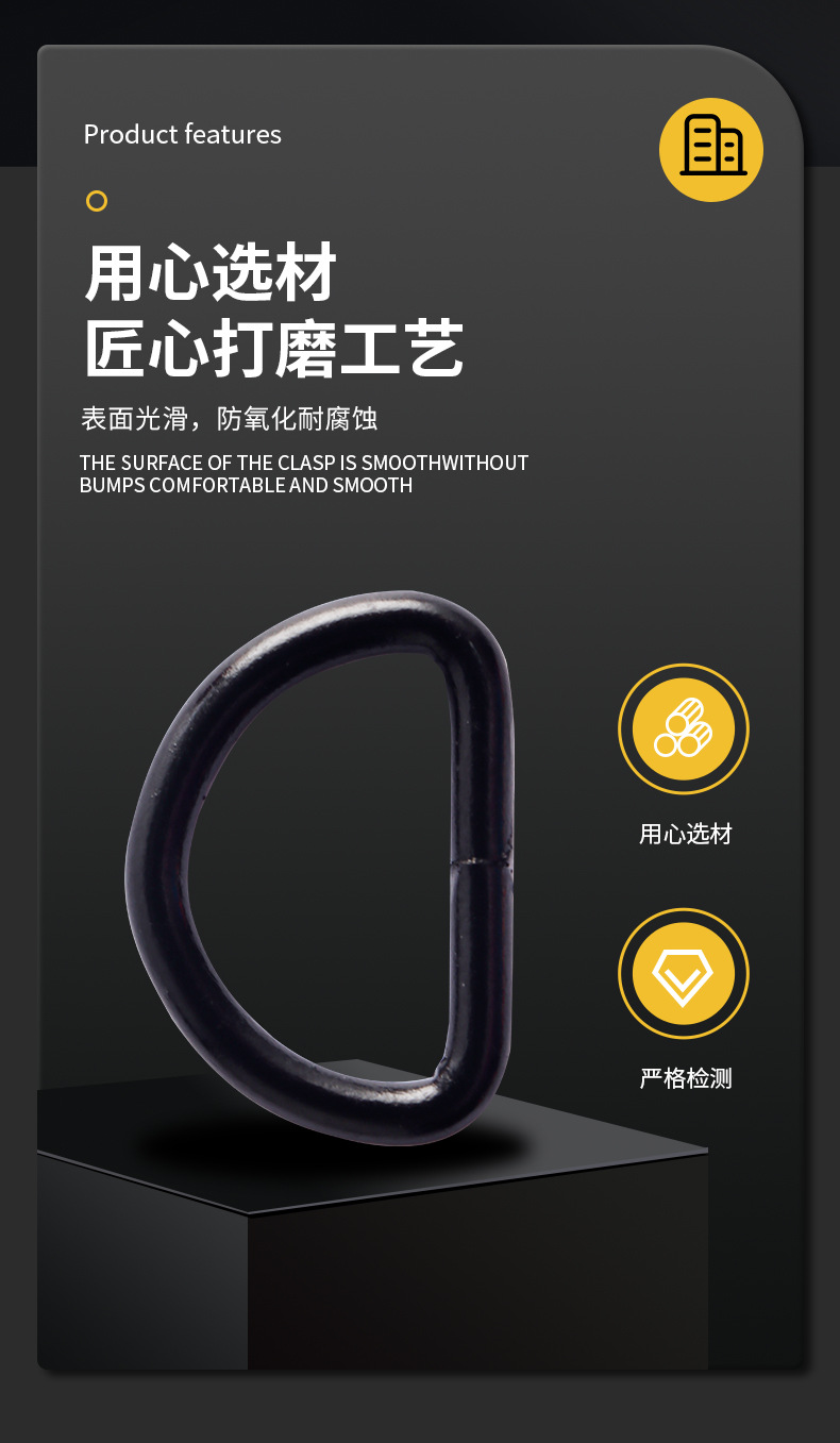 黒色金属d型ボタン合金半円環ペット首輪d字ボタン服装バッグ金物部品卸売り