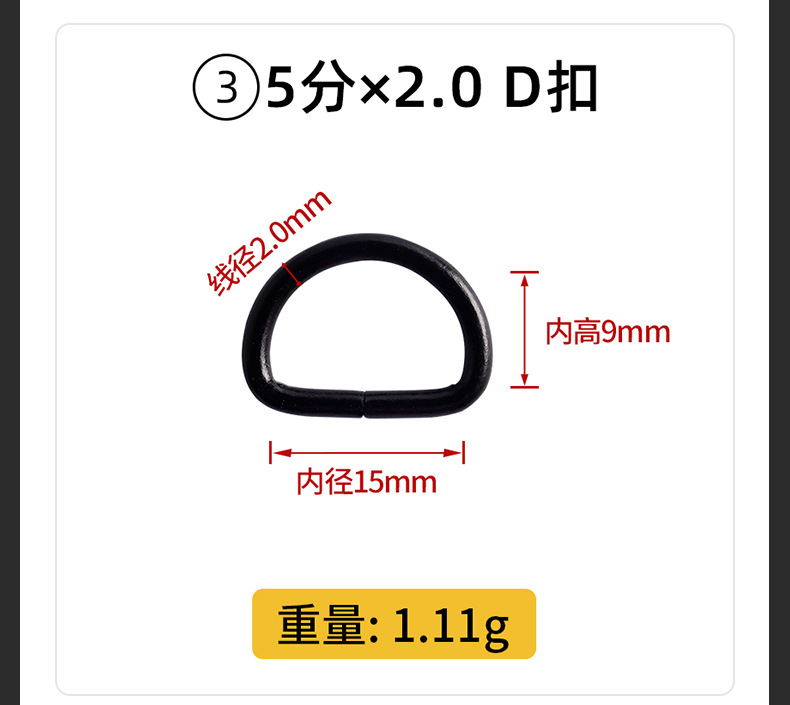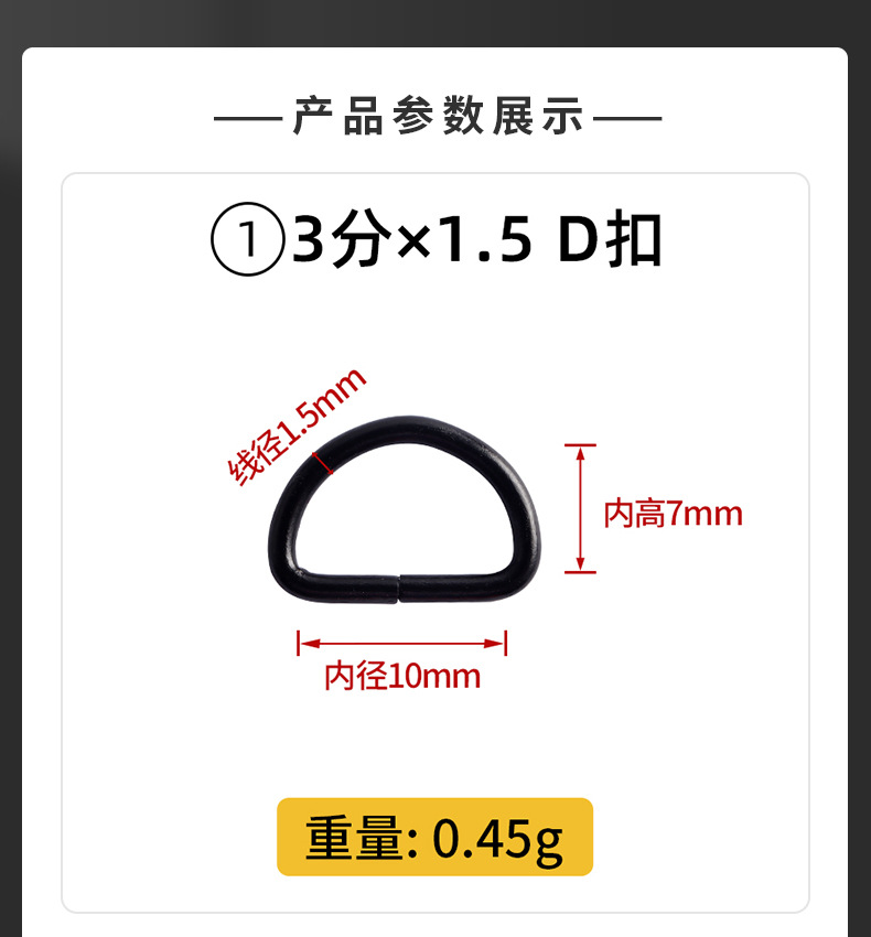 3分鉄線小Dバックル金属半円Dバックルdiy服飾箱牽引ロープ金属部品D字型リングバックル