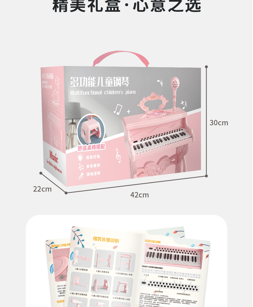 儿童音乐钢琴玩具多功能电子琴带话筒初学者练学弹琴送礼女孩
