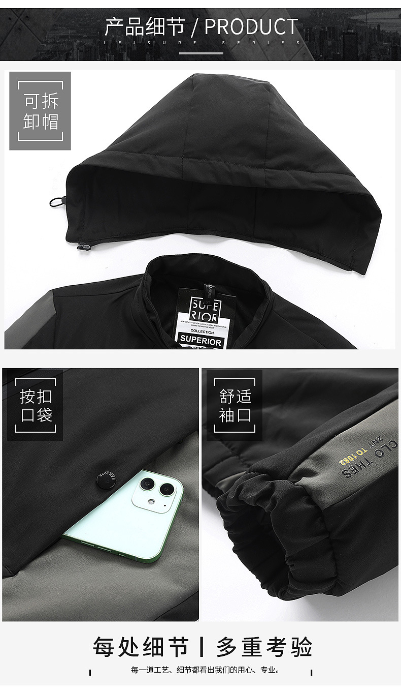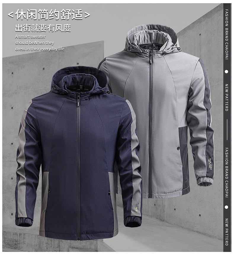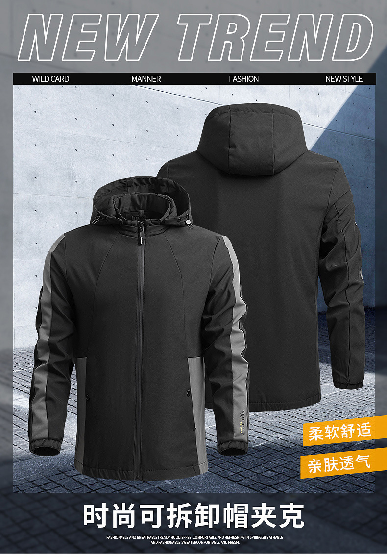 2023境男性ジャケット春秋カジュアル薄手フード付きファッション工装コートスポーツジャケット外国貿易男性服