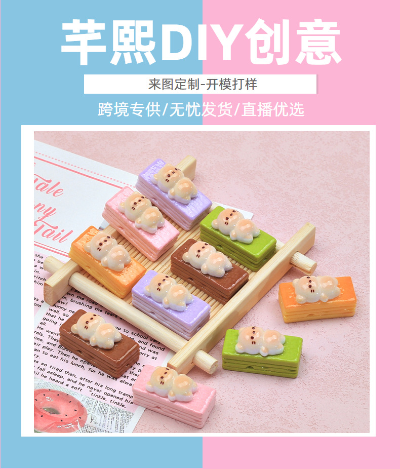 创意喵喵夹心蛋糕卡通手工diy奶油胶树脂配饰小配件饰品材料批发