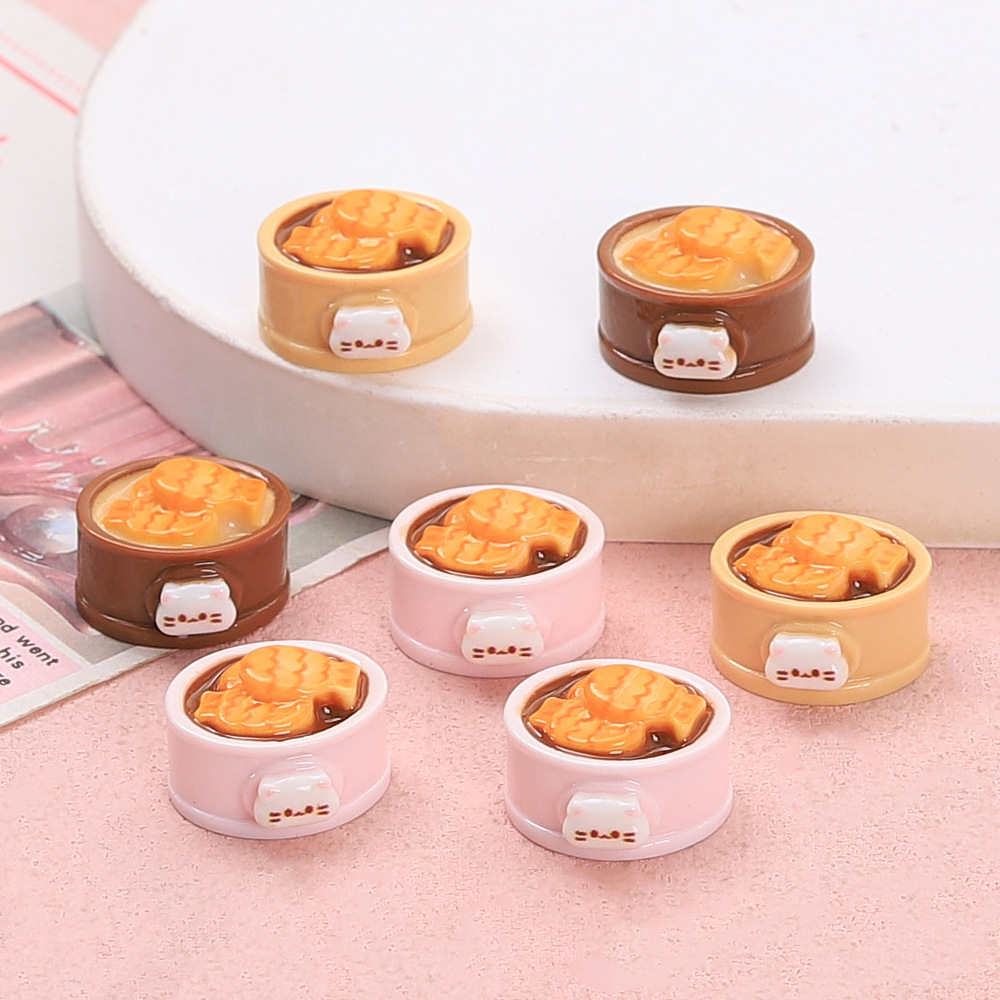 立体小猫烤鱼食玩创意手工diy奶油胶树脂配饰小配件饰品材料批发
