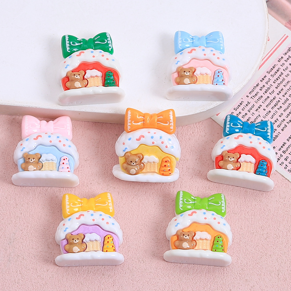 新款小熊圣诞节房屋手工diy奶油胶树脂配饰小配件饰品材料包批发