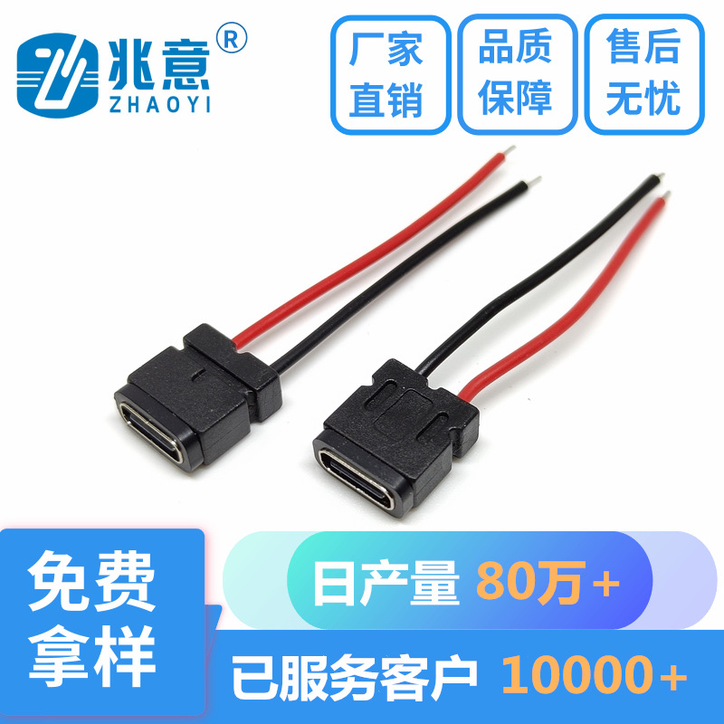工厂TYPE-C 2PIN防水母座带线 防水IPX6级小家电简易充电C口母座