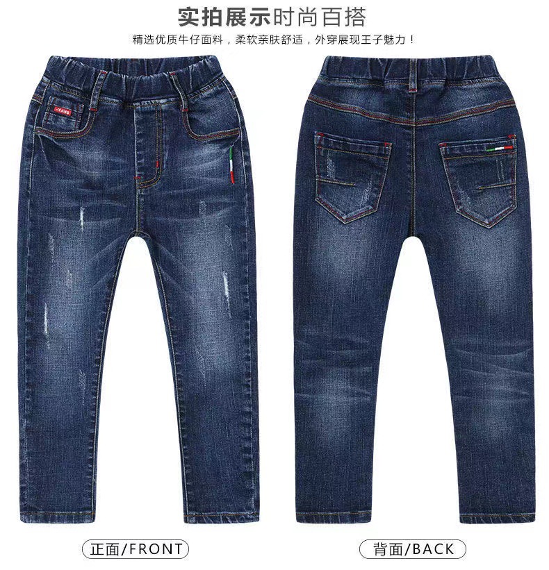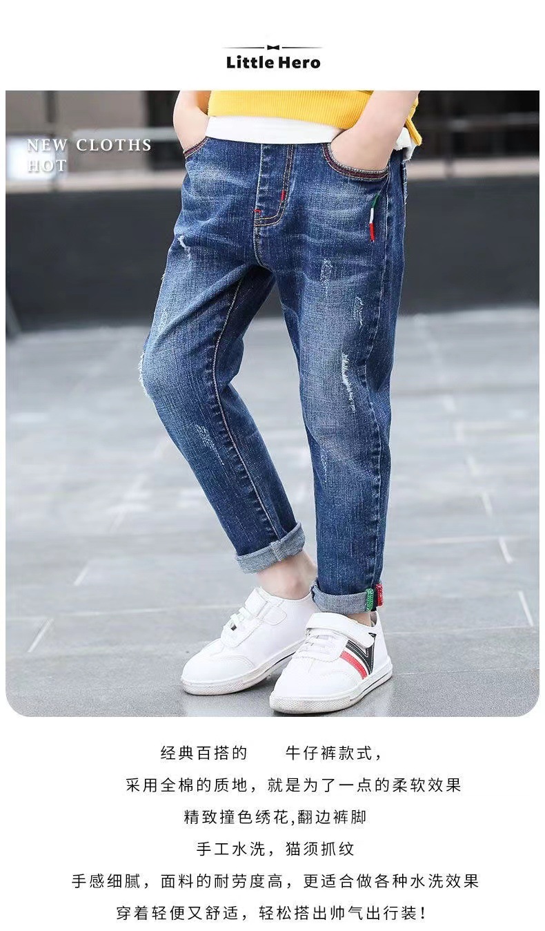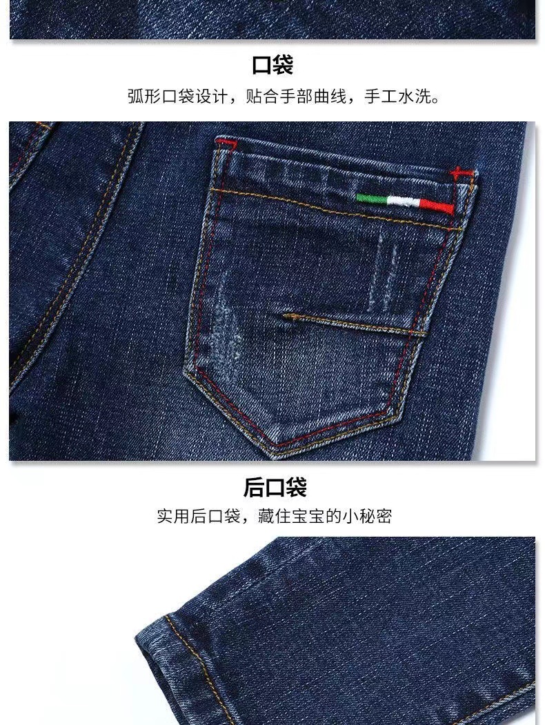 男児春秋シンプルねじ口ジーンズ真ポケットカジュアル新型子供ズボン