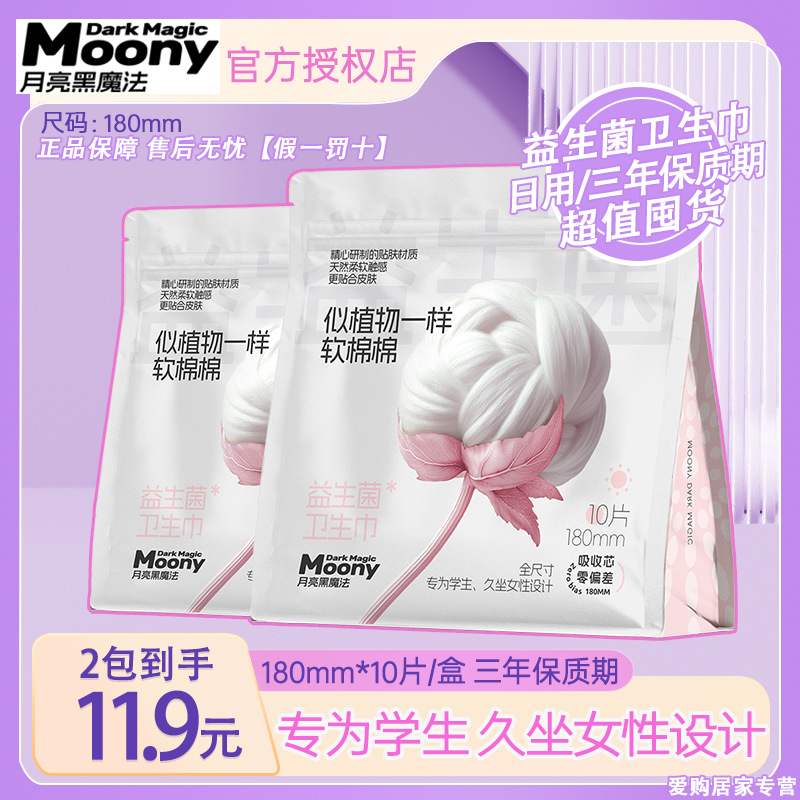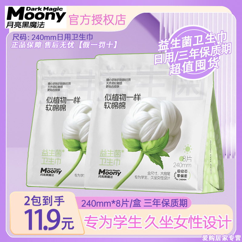ムーンブラックマジックプロバイオティクスデイリーユース240MM生理用ナプキンパッド学生超薄型おばさんナプキン8枚/*2/6パック