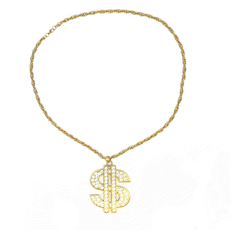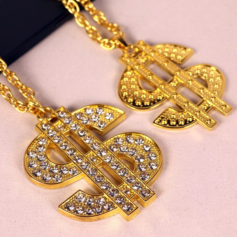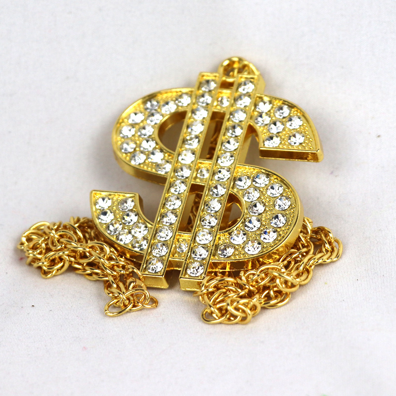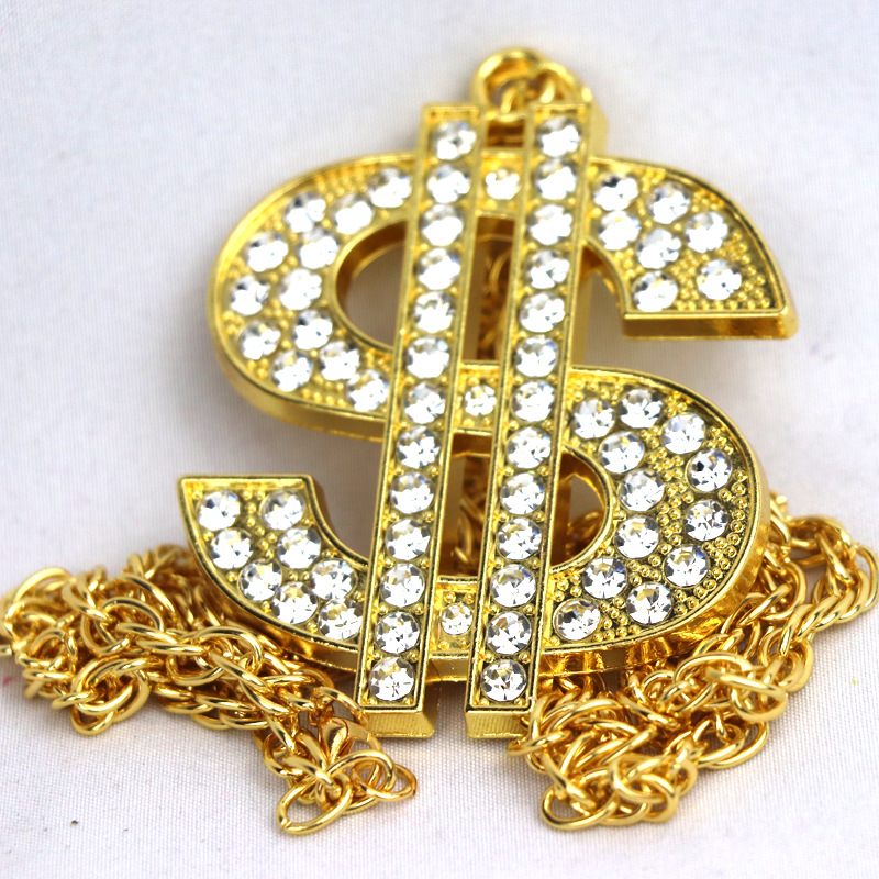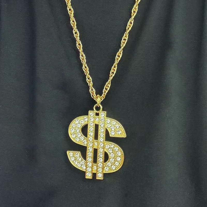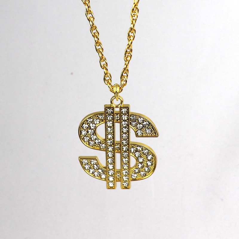欧米のクロスボーダーの装飾品のレトロなヒップホップの金のチェーンのドルの記号のネックレスの男女のドルの記号はダイヤモンドのペンダントを入れます。