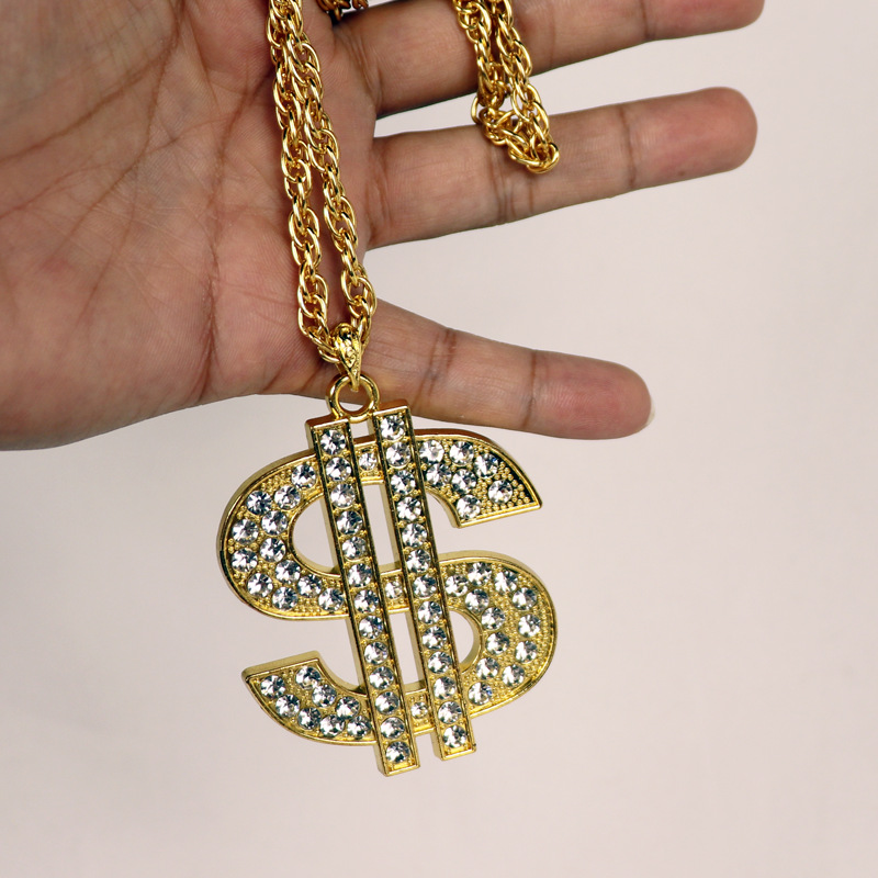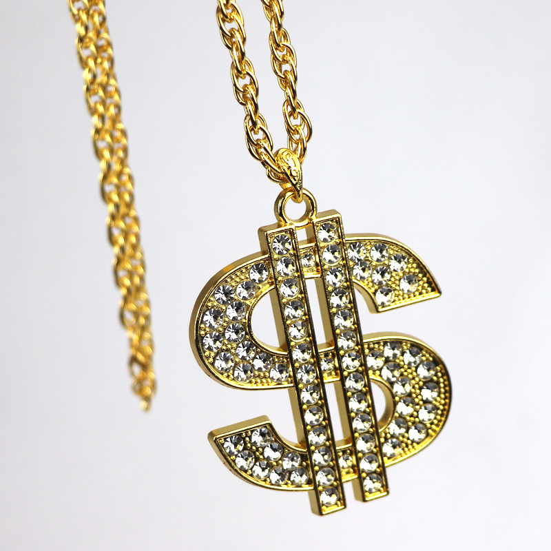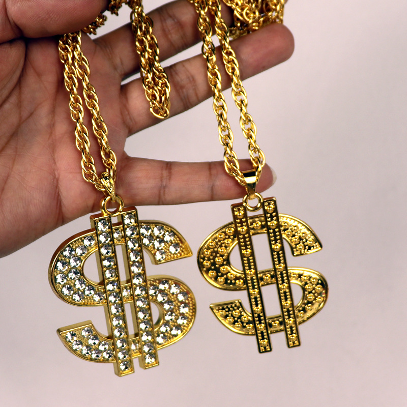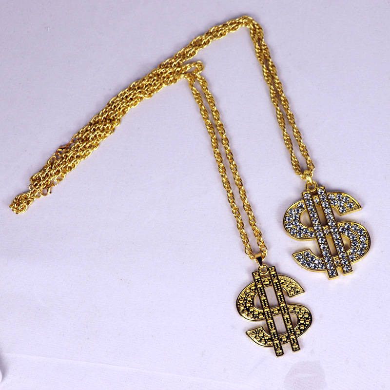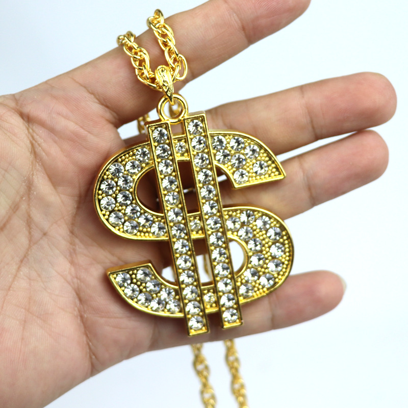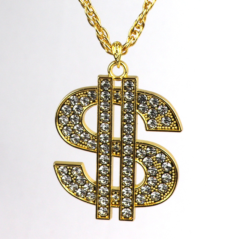 欧米のクロスボーダーの装飾品のレトロなヒップホップの金のチェーンのドルの記号のネックレスの男女のドルの記号はダイヤモンドのペンダントを入れます。