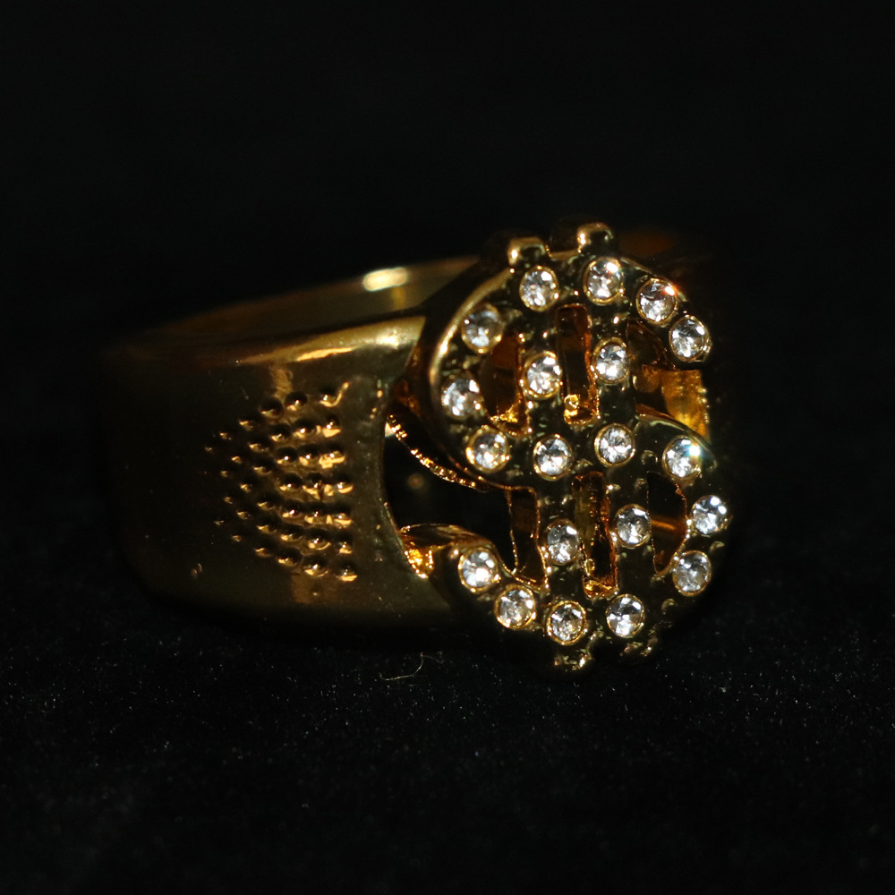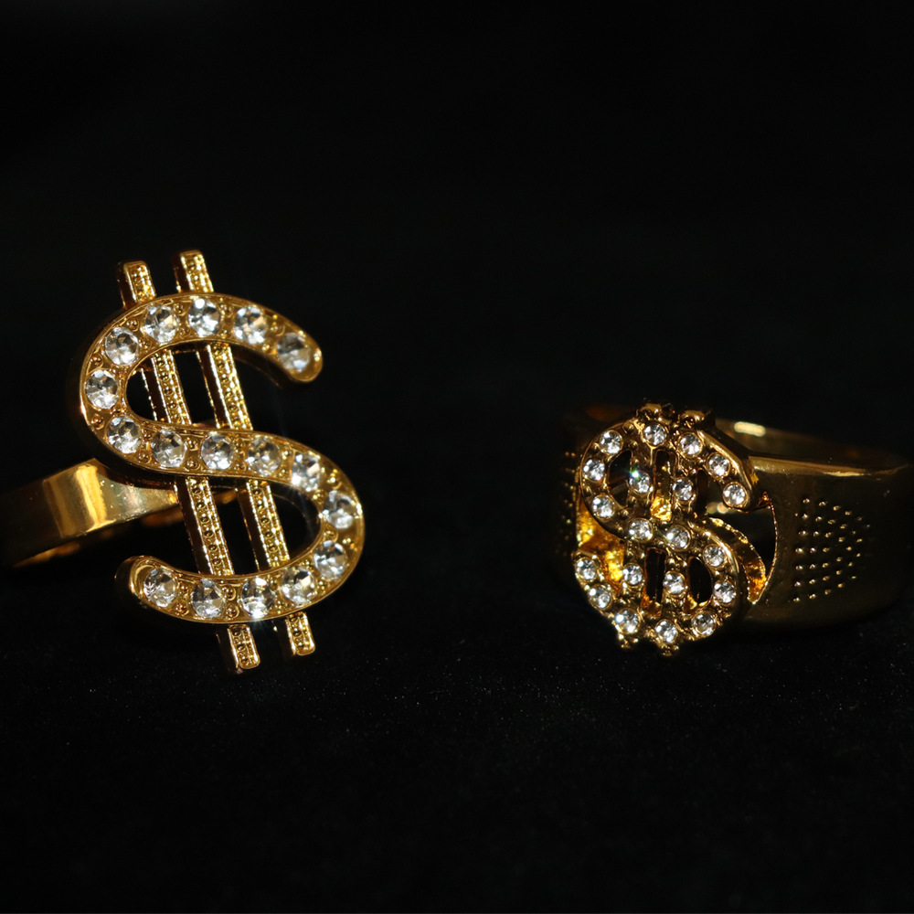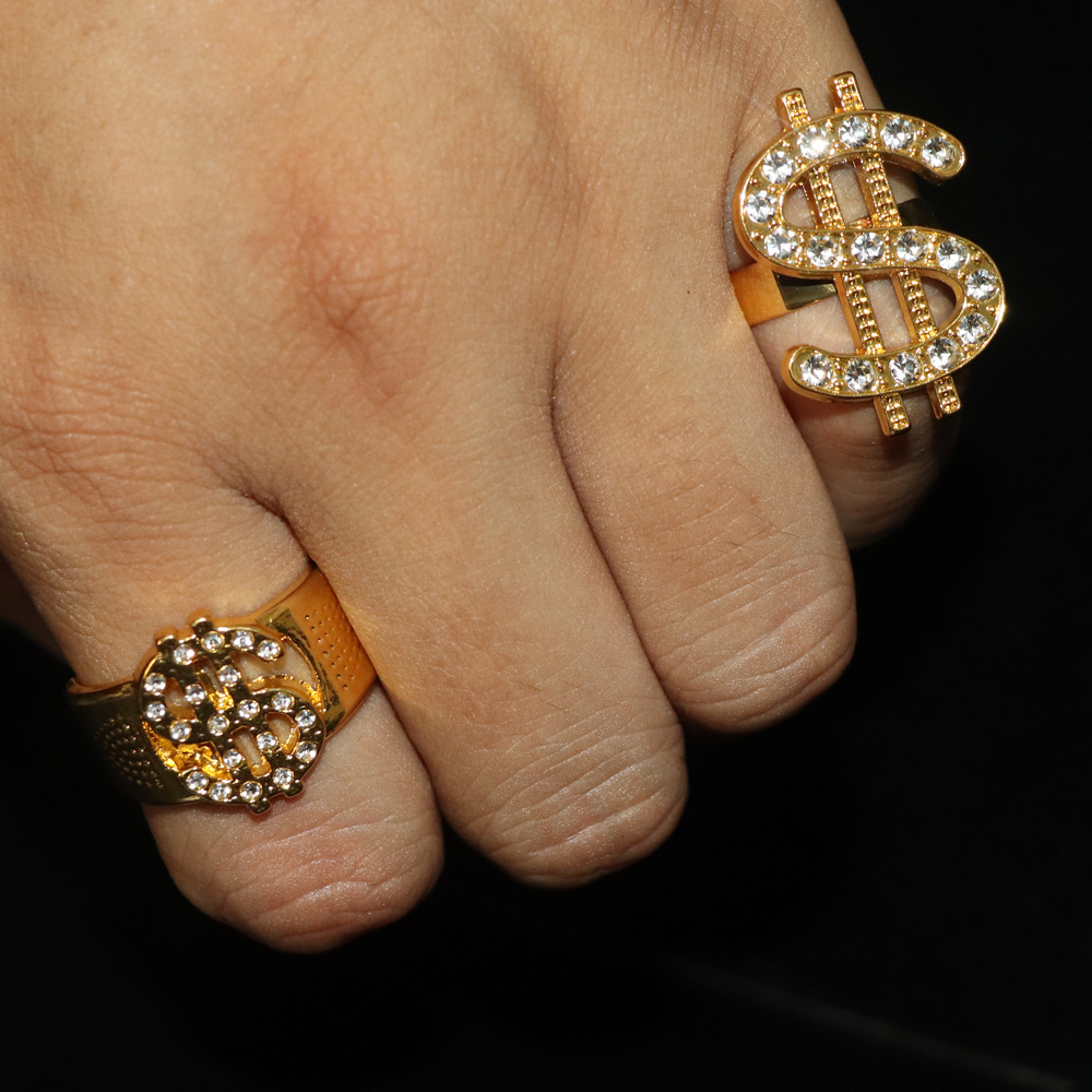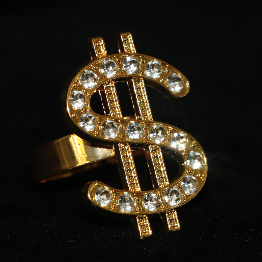 复古朋克美金符号戒指合金镶钻夸张个性潮流时尚开口指环饰品批发