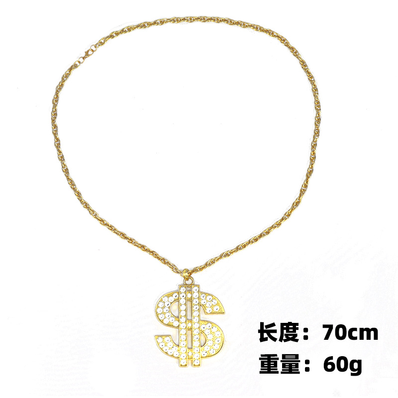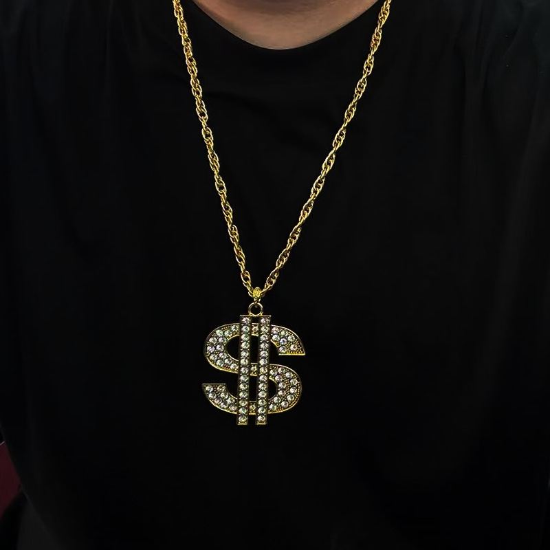欧米風クロスボーダーアクセサリー ヴィンテージヒップホップゴールドチェーン ドル記号ネックレスリング 男女兼用 ドルダイヤモンドペンダント