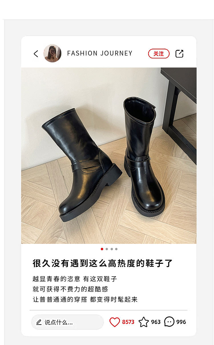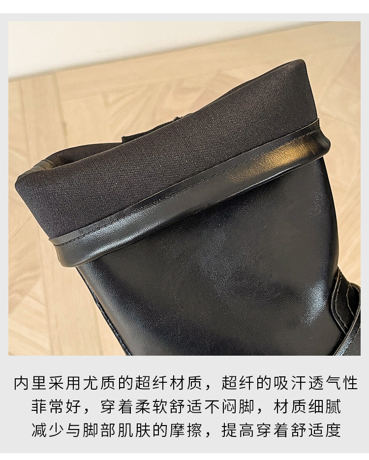 内に高くなった騎士靴2023秋冬の新型長筒騎士靴の太さと丸い頭に足の長いタバコの筒のやせた靴を合わせます。