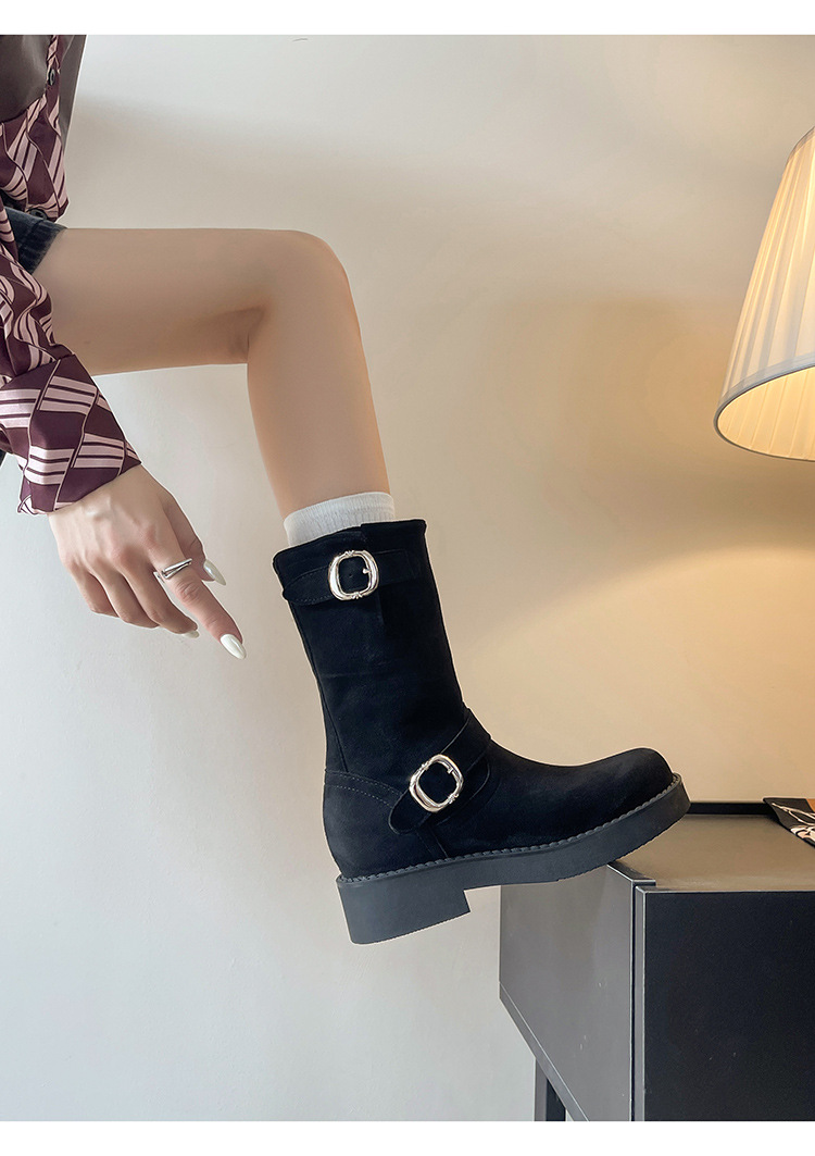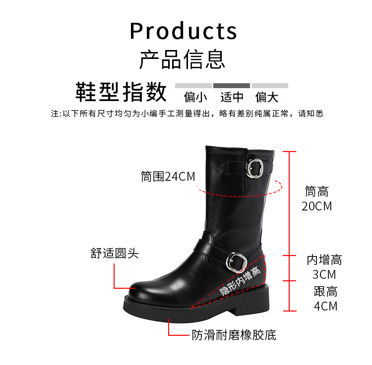 2023秋冬西部の騎士靴の弾力性がやせている靴のスエードのしわの方の頭の太さと坂の中で高くなるマーティンブーツ