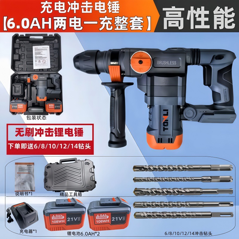 リチウム電池式ブラシレスインパクトドリル多機能充電式電動ハンマードリル兼用便利なハンドヘルドワイヤレスツールインパクトドリル