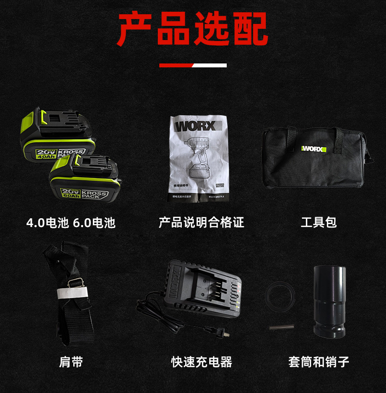 威克士WORX電動レンチ大トルクリチウム電気ブラシレスWU289架子工専用充電風砲工具