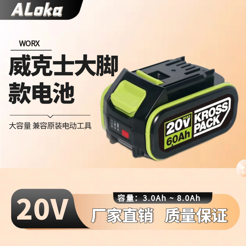 Worx(ワックス)リチウム電池20V(大型)純正電動工具バッテリー代替品、汎用タイプ、高容量