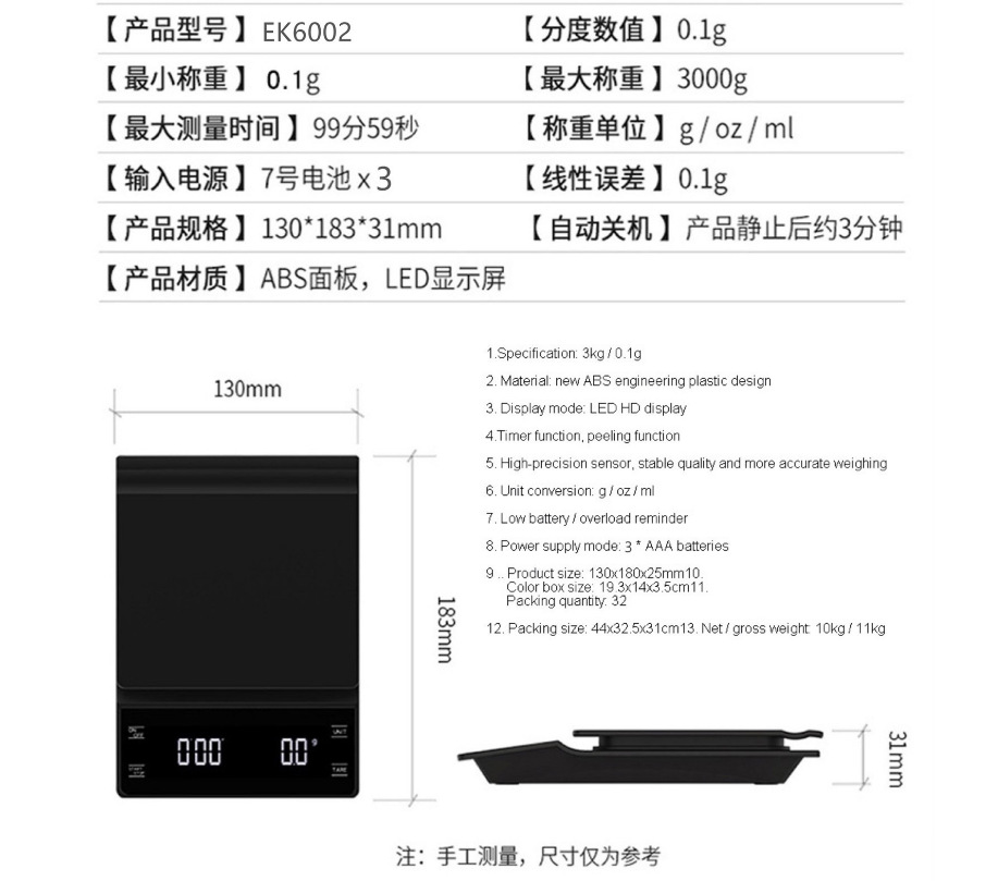 功能:正计时,倒计时,单位切换,去皮,自动关机
