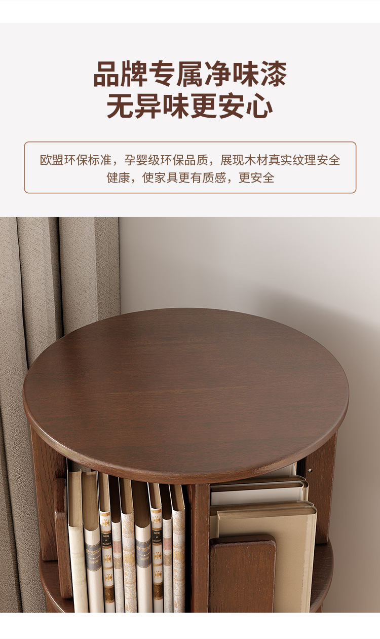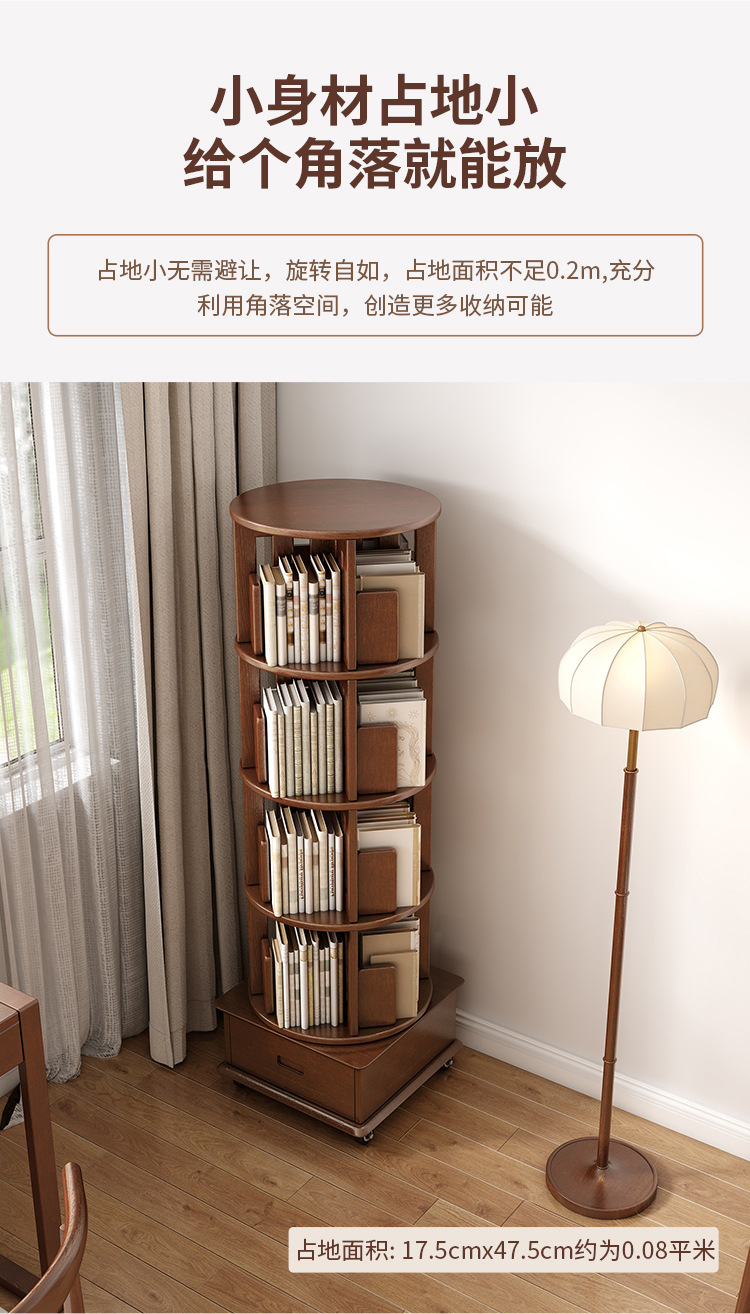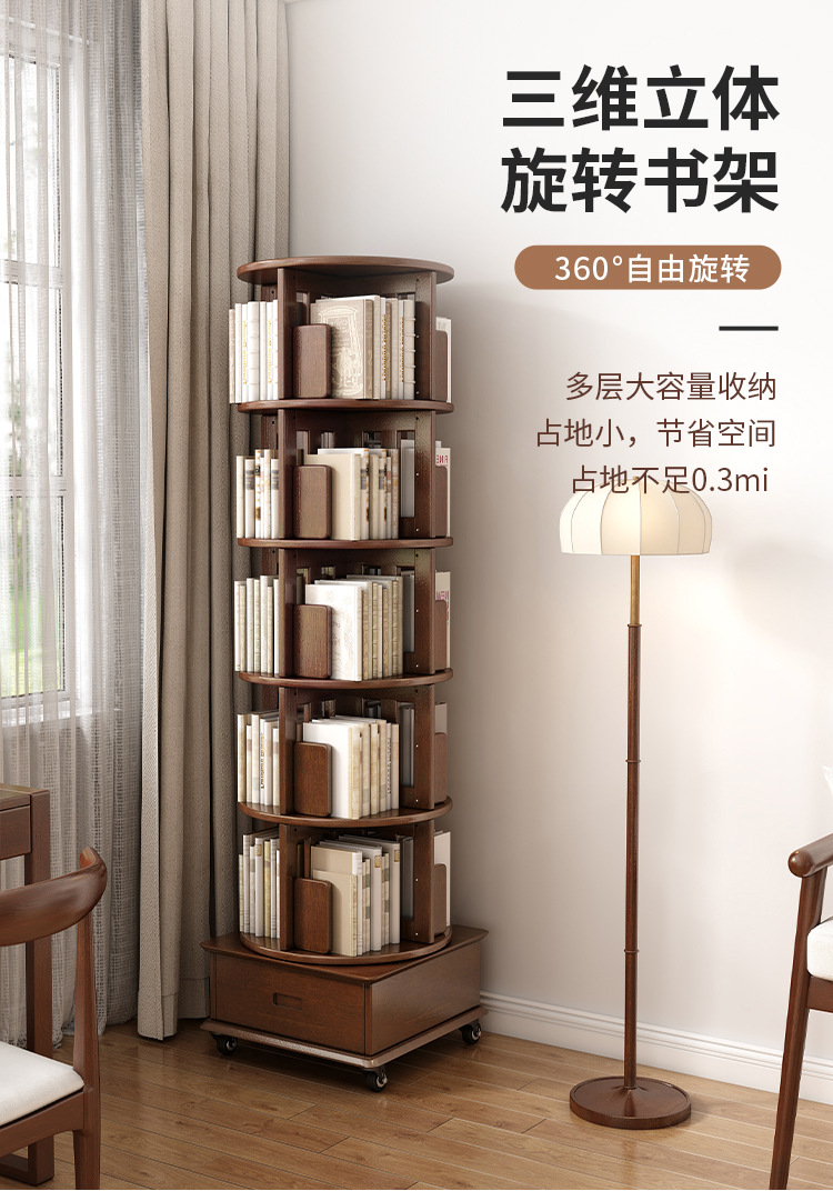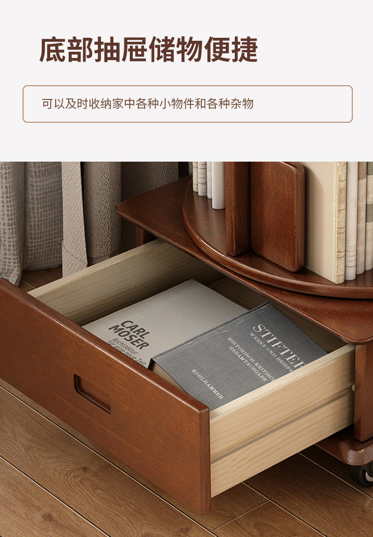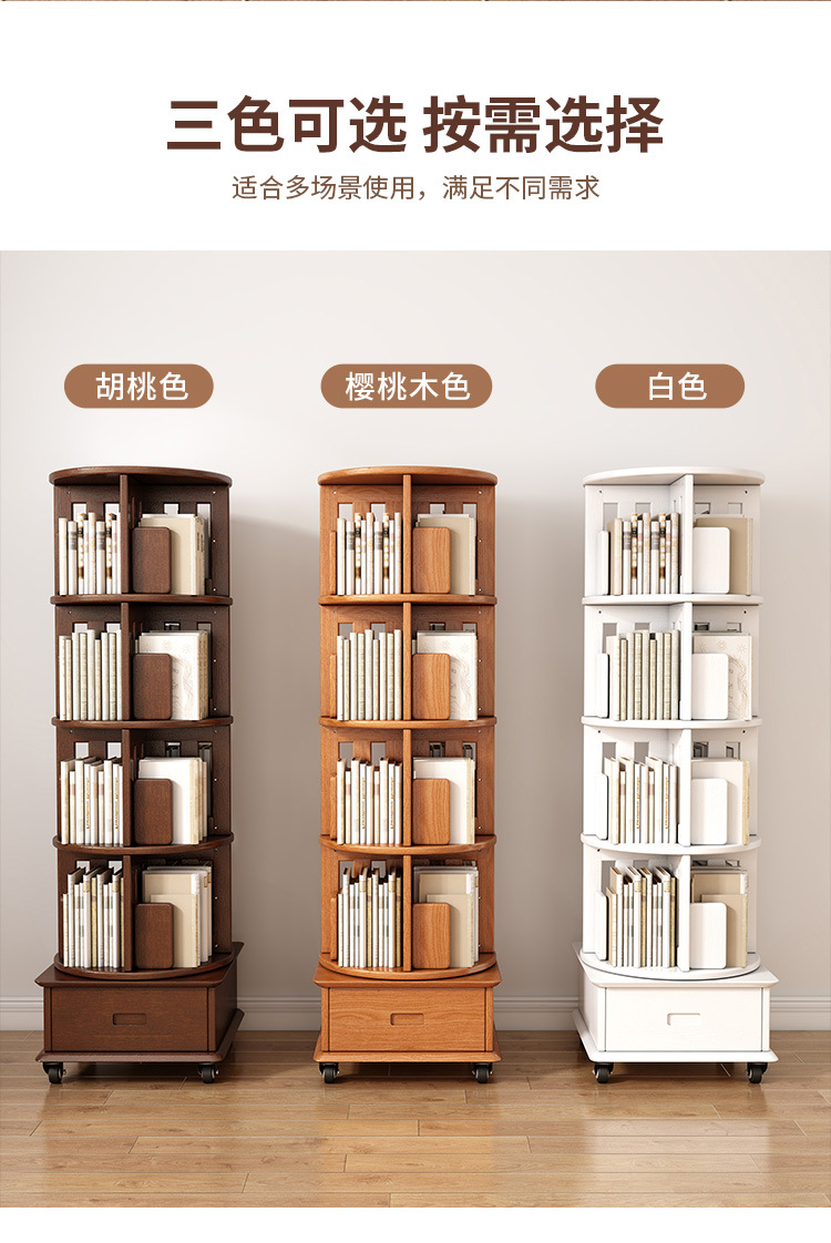 旋转书架360度书柜实木儿童移动带轮客厅网红卧室创意转角置物架
