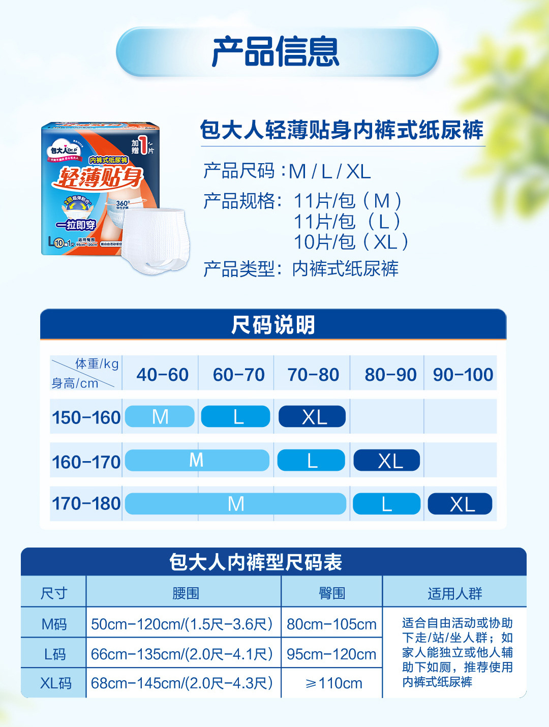 維達包大人基礎型成人紙おむつ高齢者産婦男女用成人尿不湿M/L/XLコード