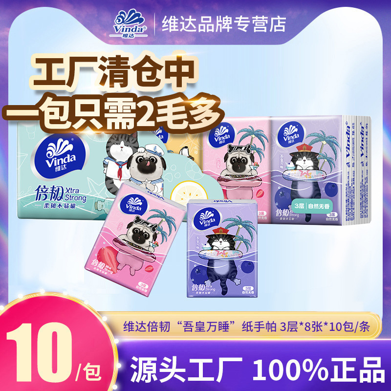 ヴィンダと吾皇猫のコラボ、8枚入り3層10パック、倍強度ミニナプキン、携帯用ティッシュ、卸売