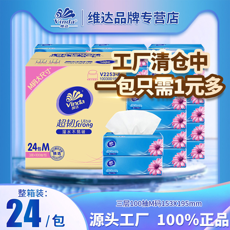 Vinda コットンタフ 3 層 M サイズ大型サイズティッシュペーパー 100 枚 24 パック大型ボックス全箱卸売バッチエンボスナプキン