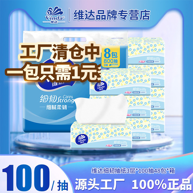 Vinda Fine Tough 24 パック 3 層 100 ティッシュペーパー全箱大型箱手頃な価格のフェイシャルティッシュナプキン卸売