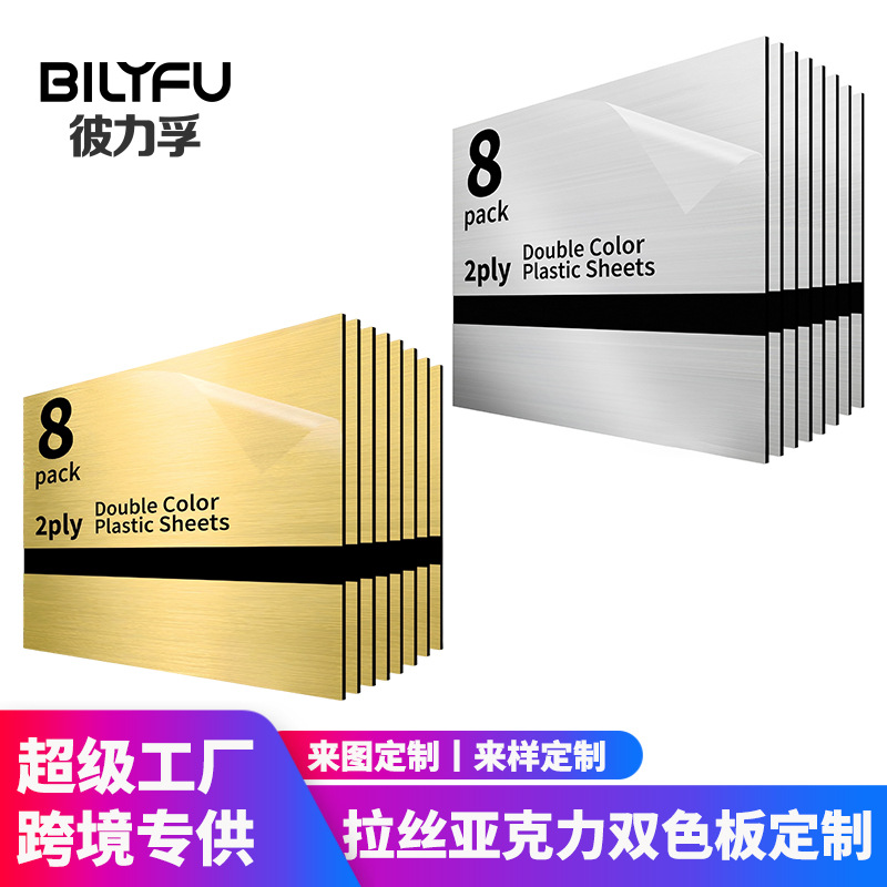 拉丝亚克力双色板激光UV印刷门牌标识铭牌用金属质感亚克力双色板