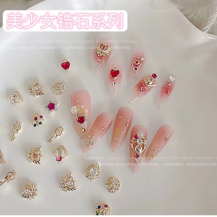 美少女戦士セーラームーンネイルアートアクセサリー卸売ジルコン魔法の杖五芒星カラフルなハートクロスネイルデコレーション