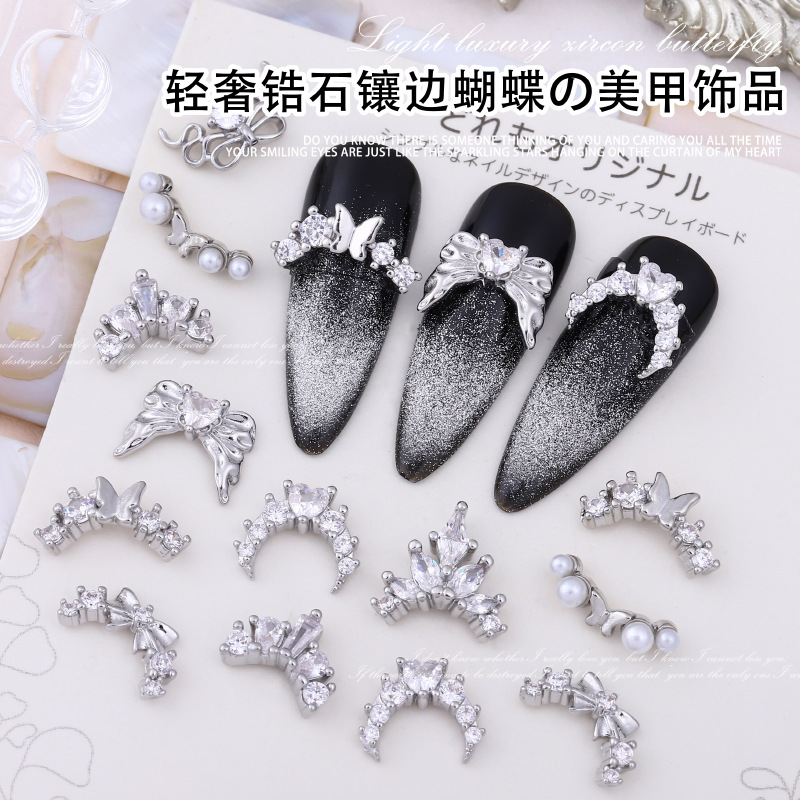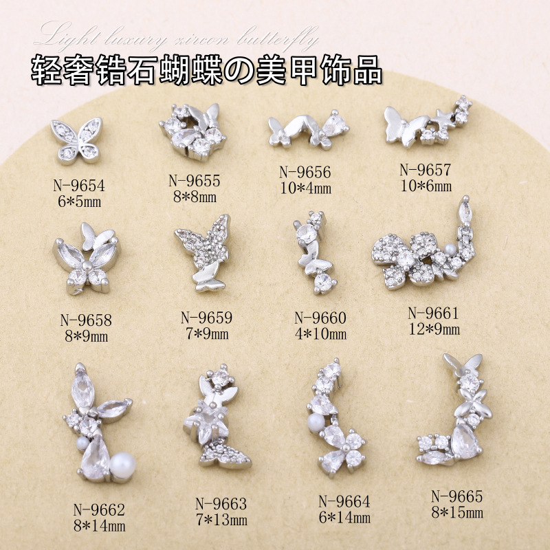 新しいネイルジルコンのアクセサリーの蝶の花の間の超きらめく立体の蝶の縁の銀色の爪の小さい装飾の異形のドリル