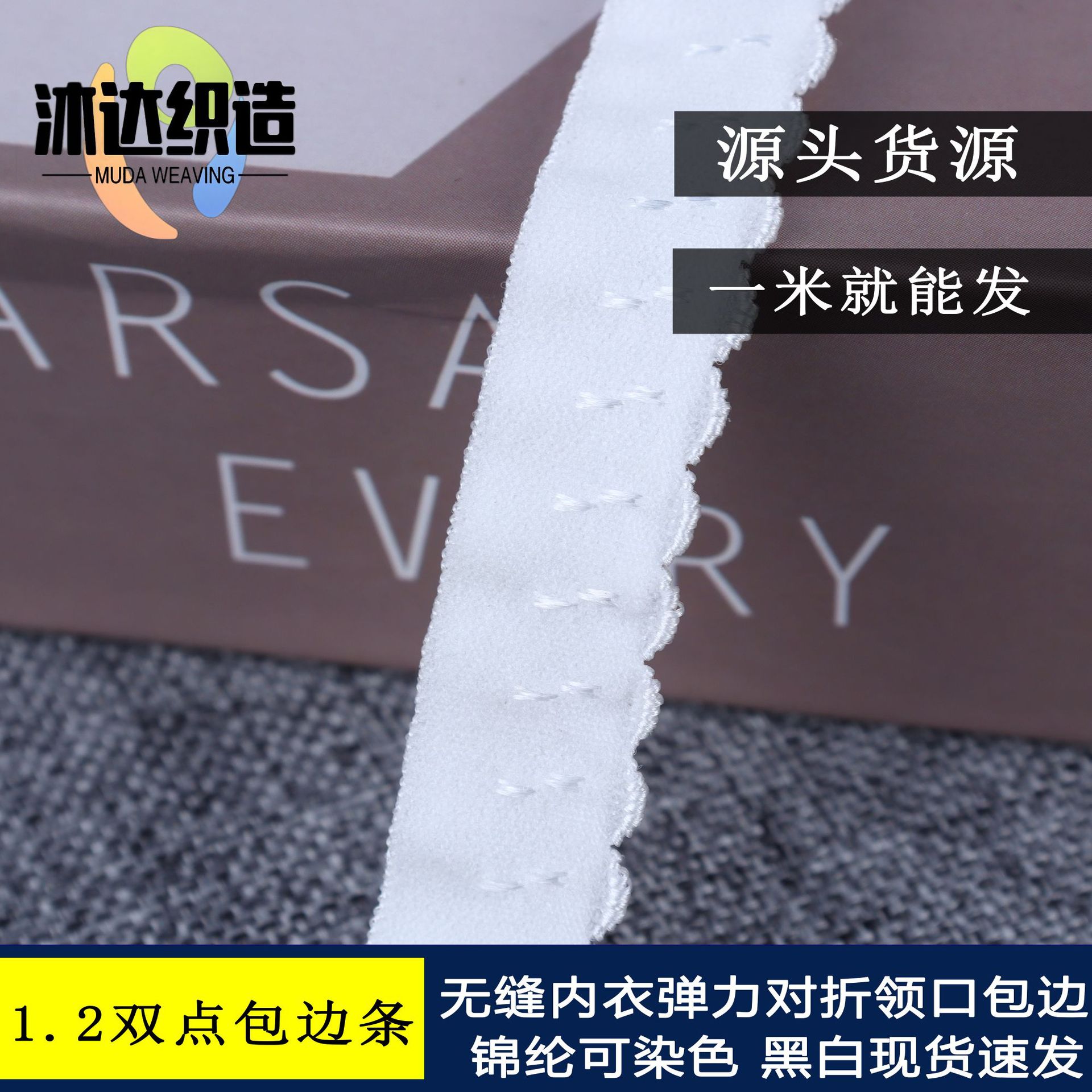 1.2cm星点二つ折り包縁条二重レース弾性帯下着服装襟元白黒弾力包縁帯