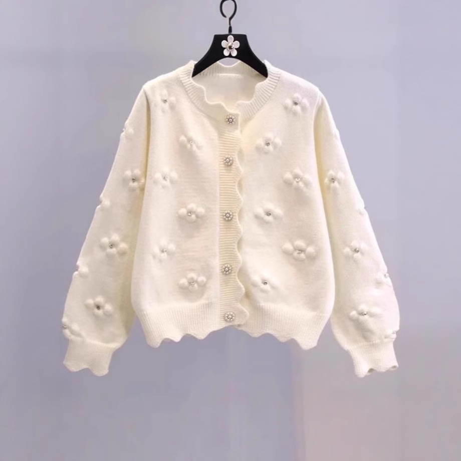 立体ビーズフラワーセーター春と秋の新作日本のカレッジスタイルのファッショナブルな年齢を軽減するトップジャケット