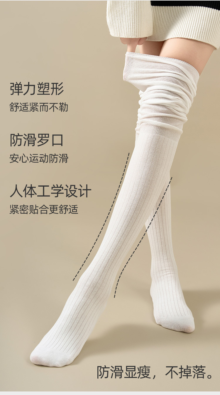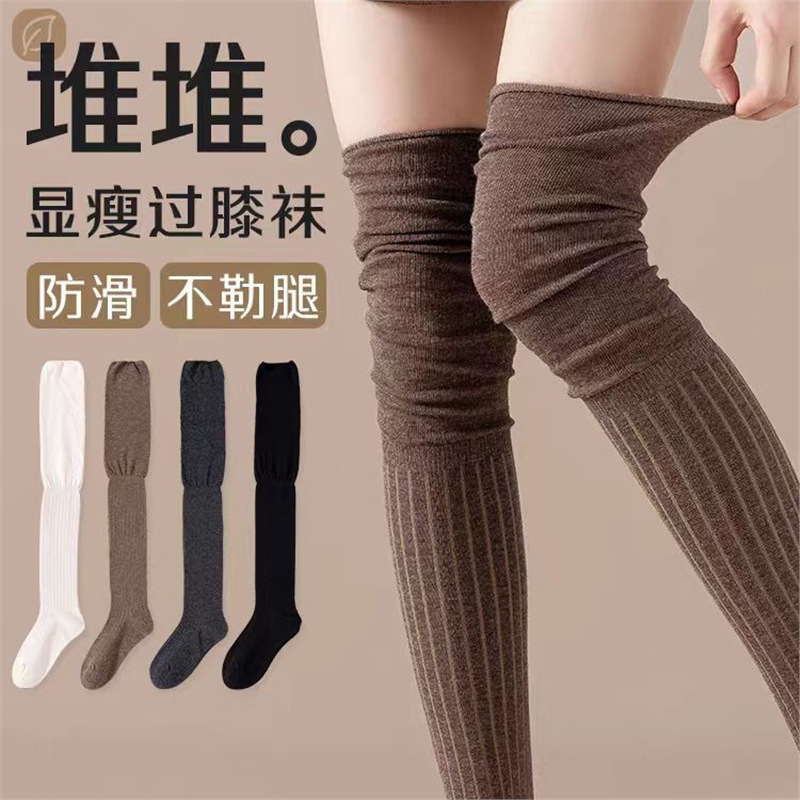 堆堆袜女过膝袜长筒春秋季拼接奶白过膝盖长腿袜子秋冬款防滑长袜