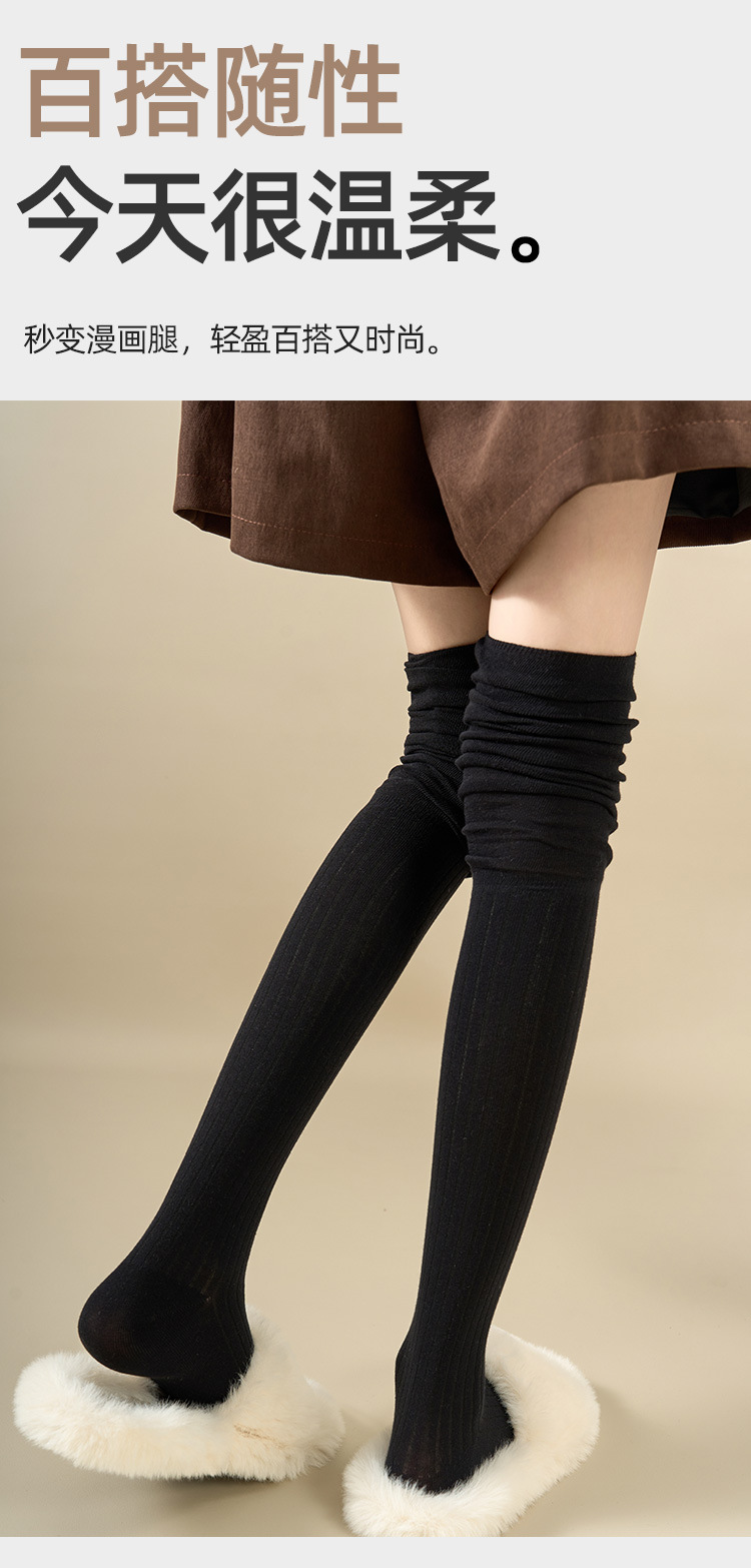 秋冬の韓国版の純色は膝の靴下を越えます。