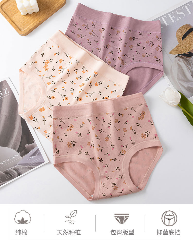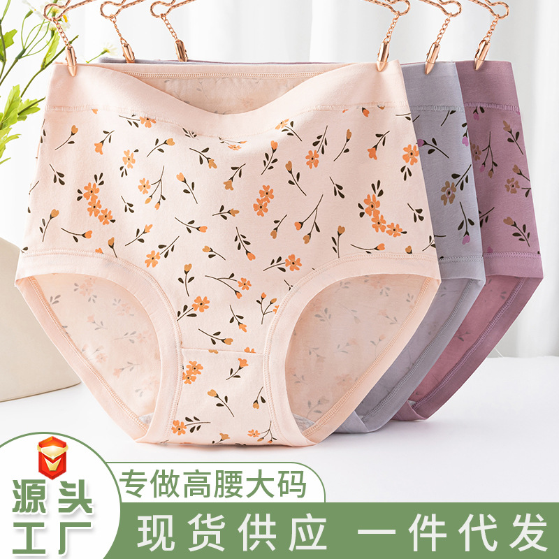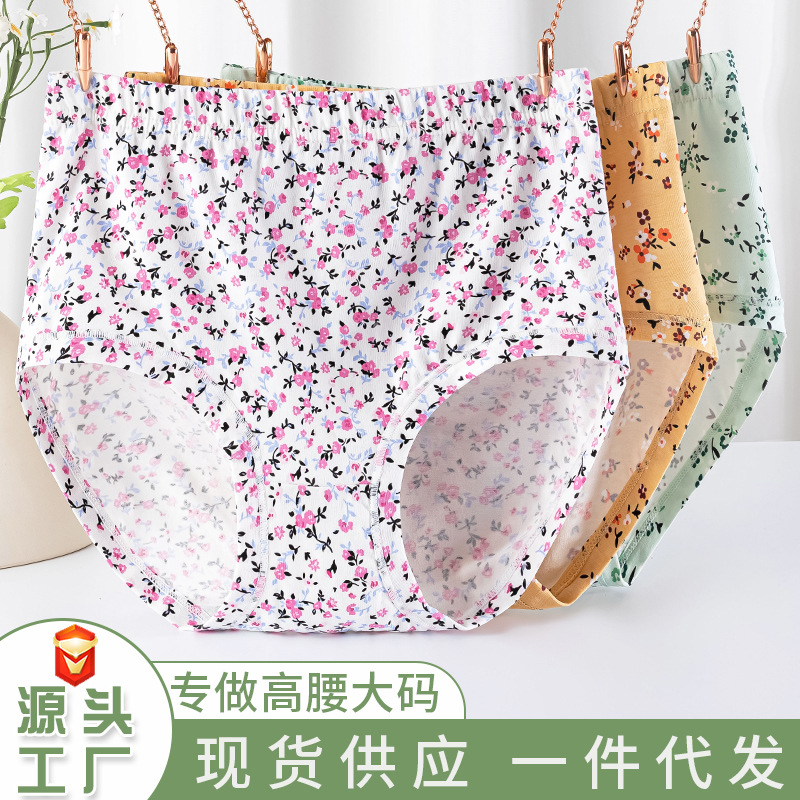 綿ハイウエスト大きいサイズmm中高年ママ太った女性プリント下着綿抗菌花柄ブリーフ