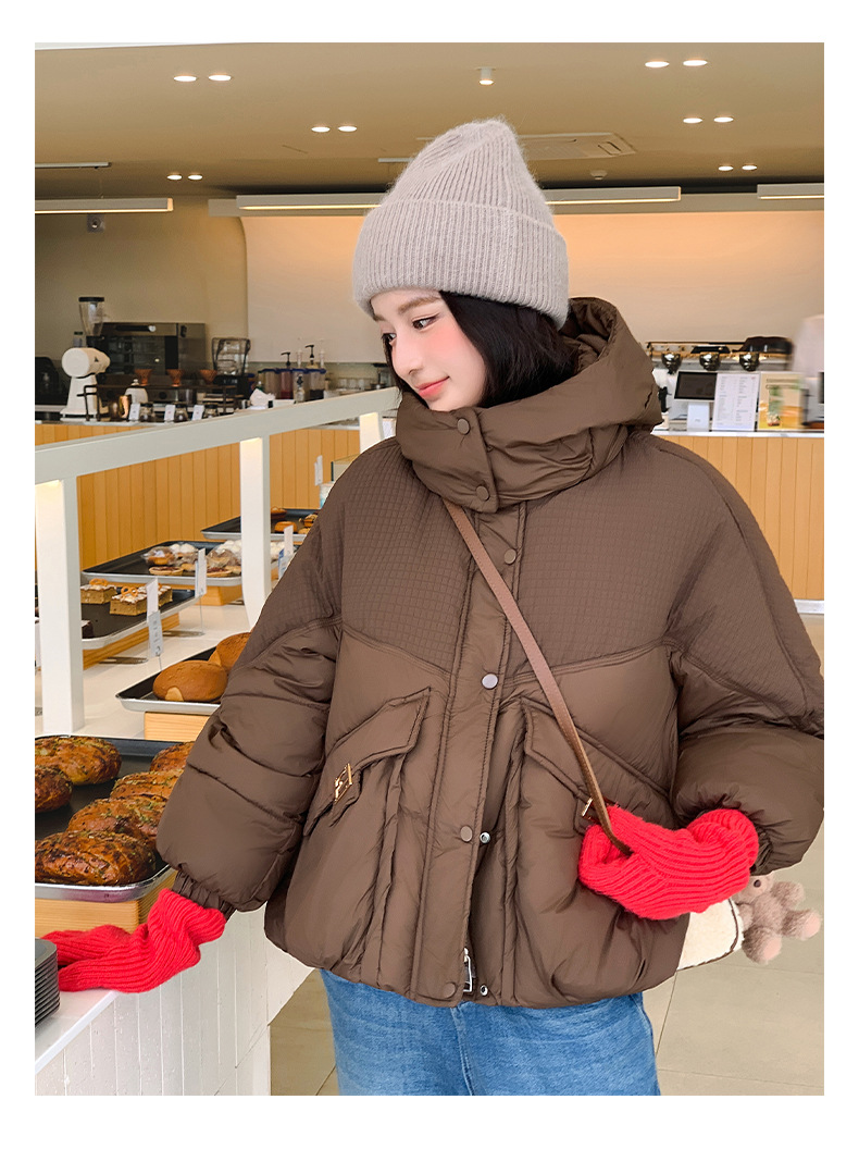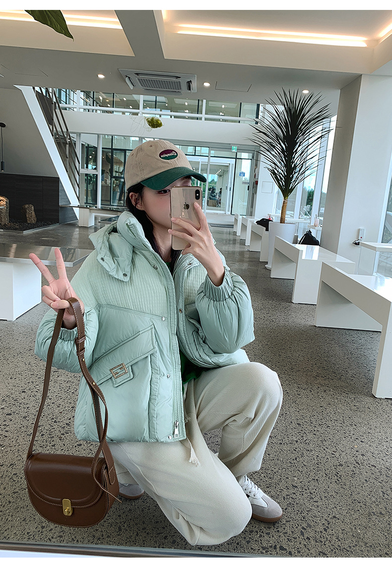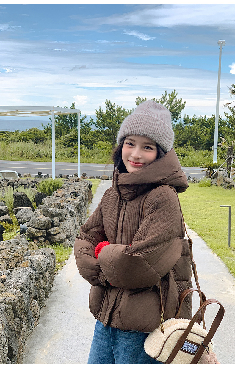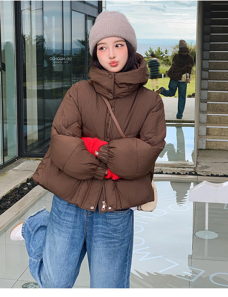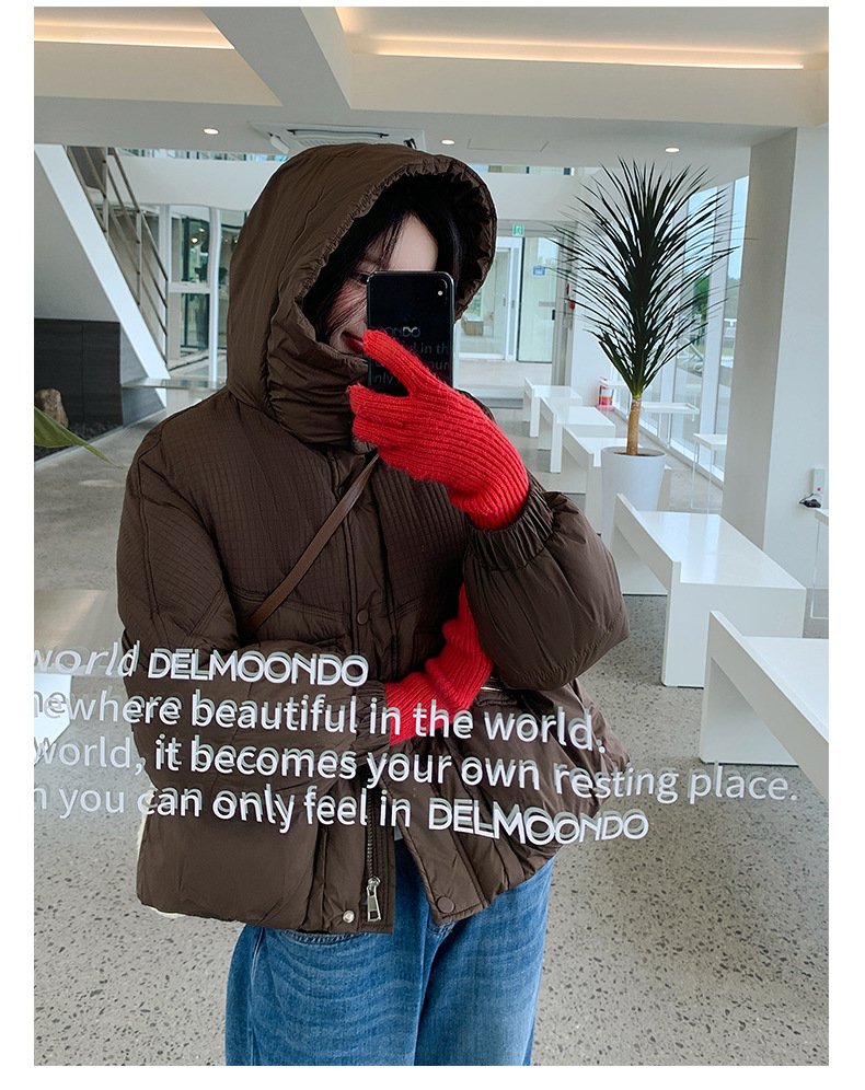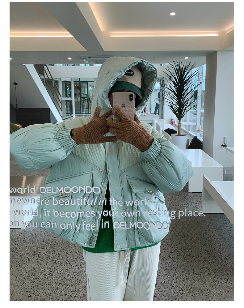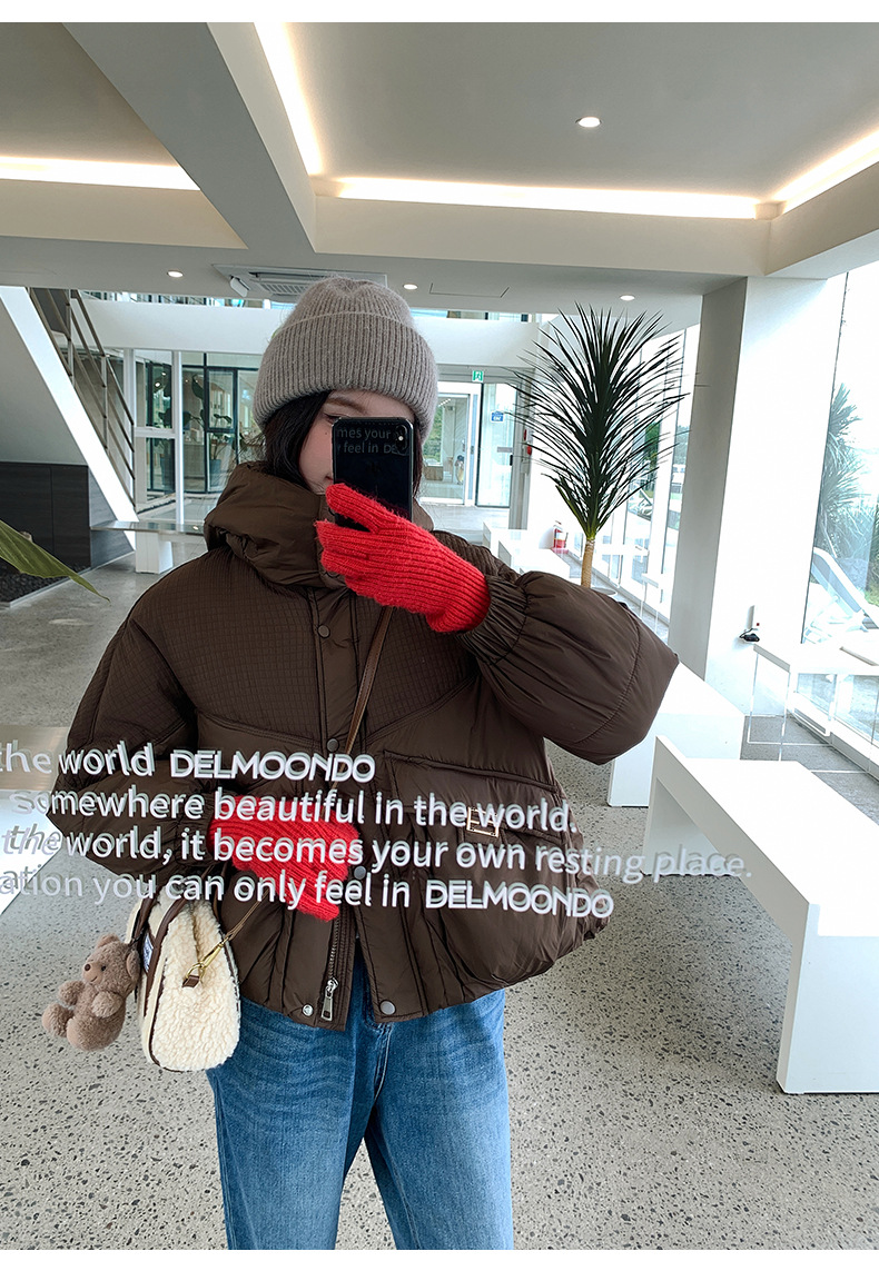 2025 新しい冬の女性の韓国スタイルのショートフード付きダウンコットンジャケットカジュアルルーズ厚いコットンジャケット