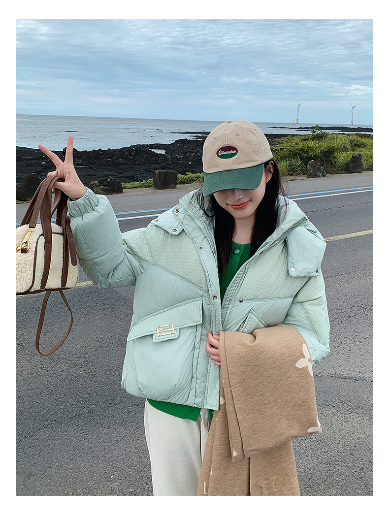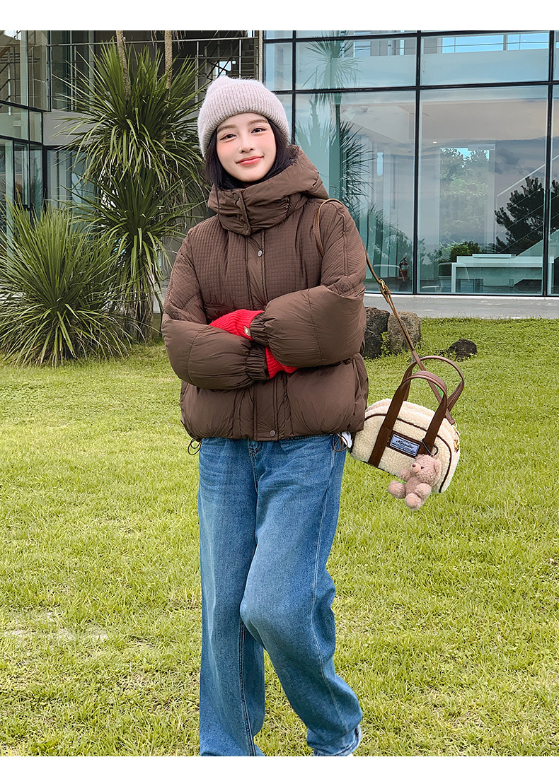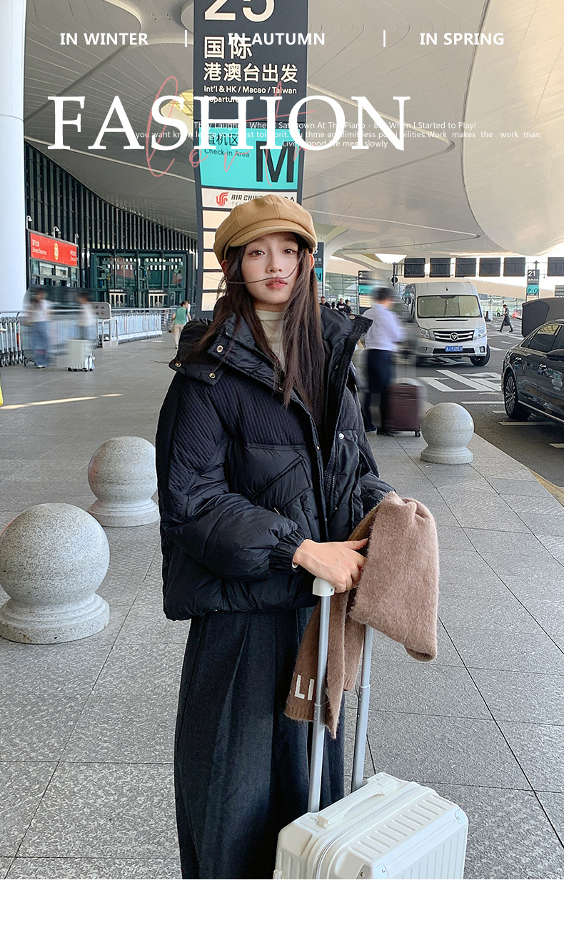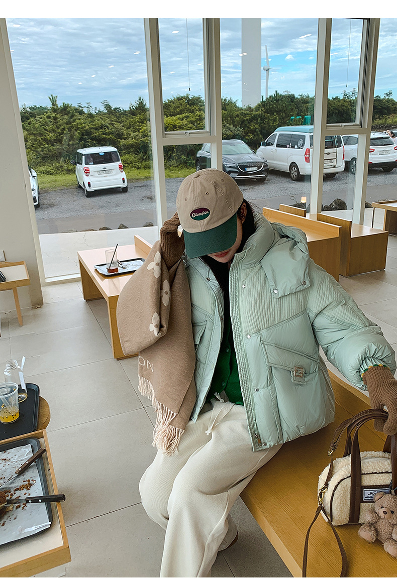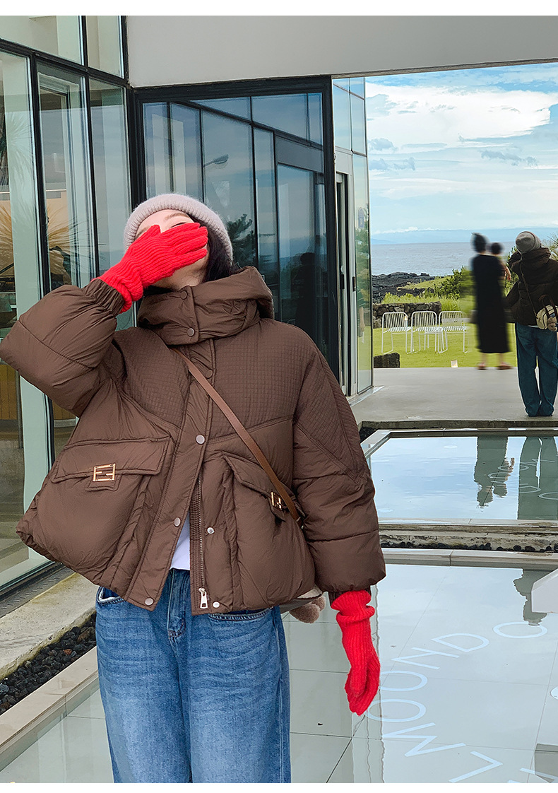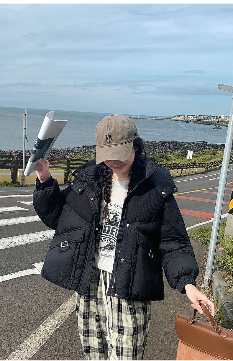 2025 新しい冬の女性の韓国スタイルのショートフード付きダウンコットンジャケットカジュアルルーズ厚いコットンジャケット