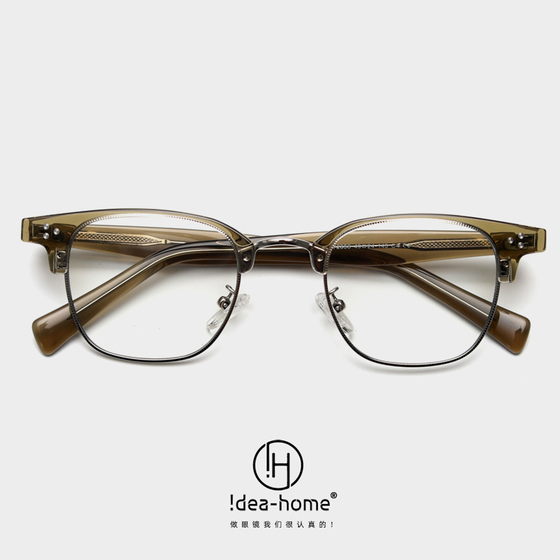 2356日韓復古眉毛近視眼鏡枠男女同項文芸ファッション手作り半金属板材脚