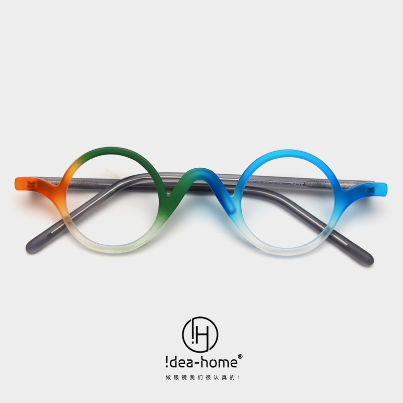 9154個性大衆レトロ円小枠近視眼鏡潮男女文芸平光鏡架板材脚虹色