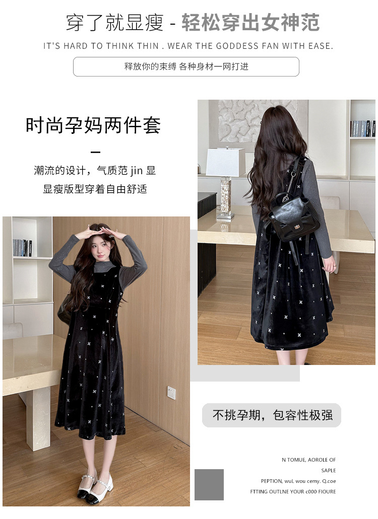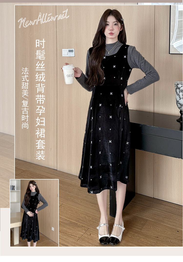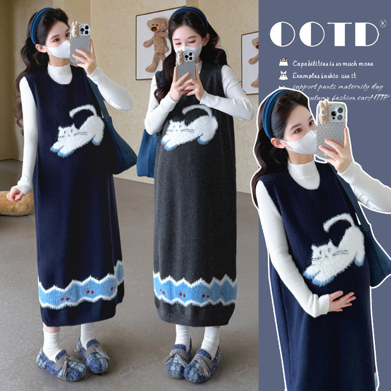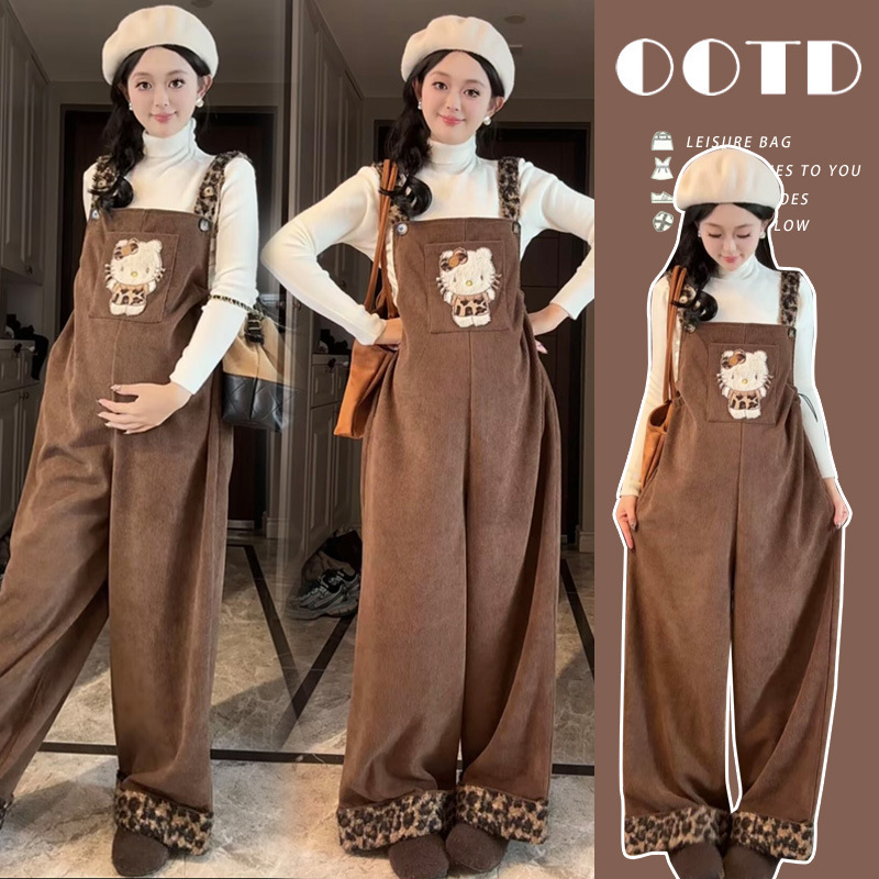 2025年秋冬高品质原创针织打底+卡通孕妇加绒时尚背带裤孕妇套装