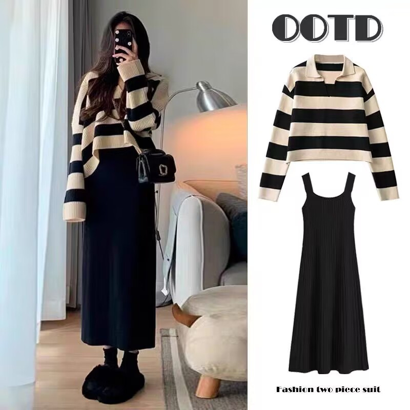 实拍新品~2025秋冬新款韩版时尚减龄显瘦提花小马马甲裙+打底套装