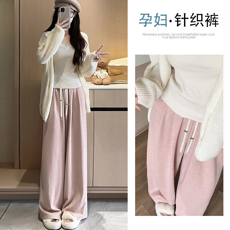 妊婦の虹のもち米のズボンのワイドレギンスのズボンの春と秋の外は2024の新型の虹の泡のメリヤスのズボンを着ます。