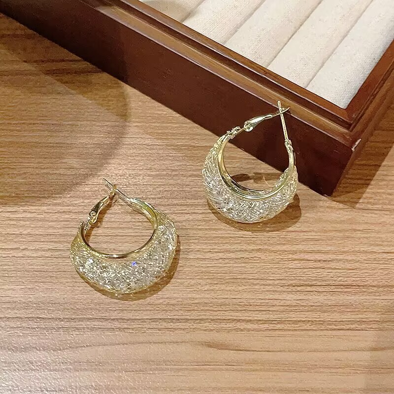 メッシュの水晶のイヤリングの女性の高級感のネットの赤いのと同じ円の耳飾りの独特な設計の気質の耳のボタンの軽い贅沢な新型