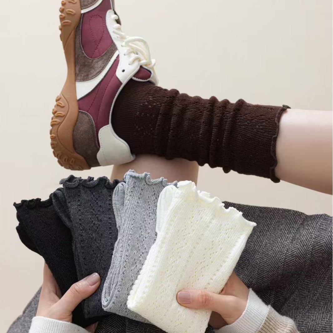 2025秋冬新品小腿袜镂空韩系花边长筒堆堆袜子女网红爆款无骨棉袜