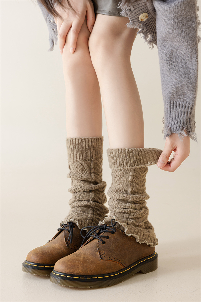麻花纹堆堆袜套女2025秋季新款针织日系腿套显瘦中筒袜洛丽塔袜子