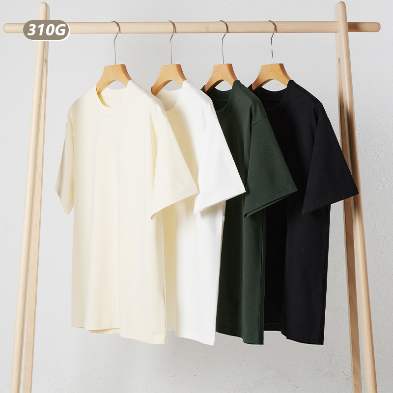 310グラムの重ポンドの純綿の新疆長絨綿のゆったりしているtシャツの男性の日系は基礎の純色の丸首のカップルの半袖を打ちます。