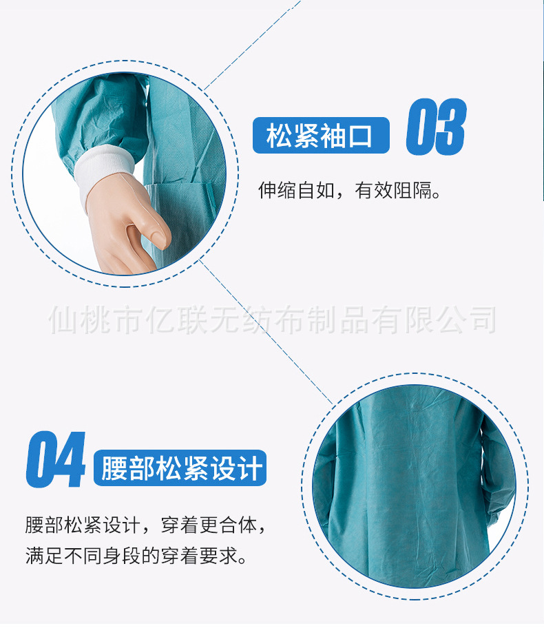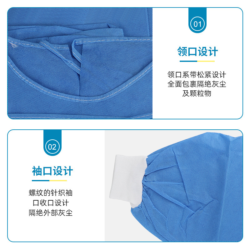使い捨て手術服独立包装無菌医療用隔離服SMS不織布逆着式ニット袖口