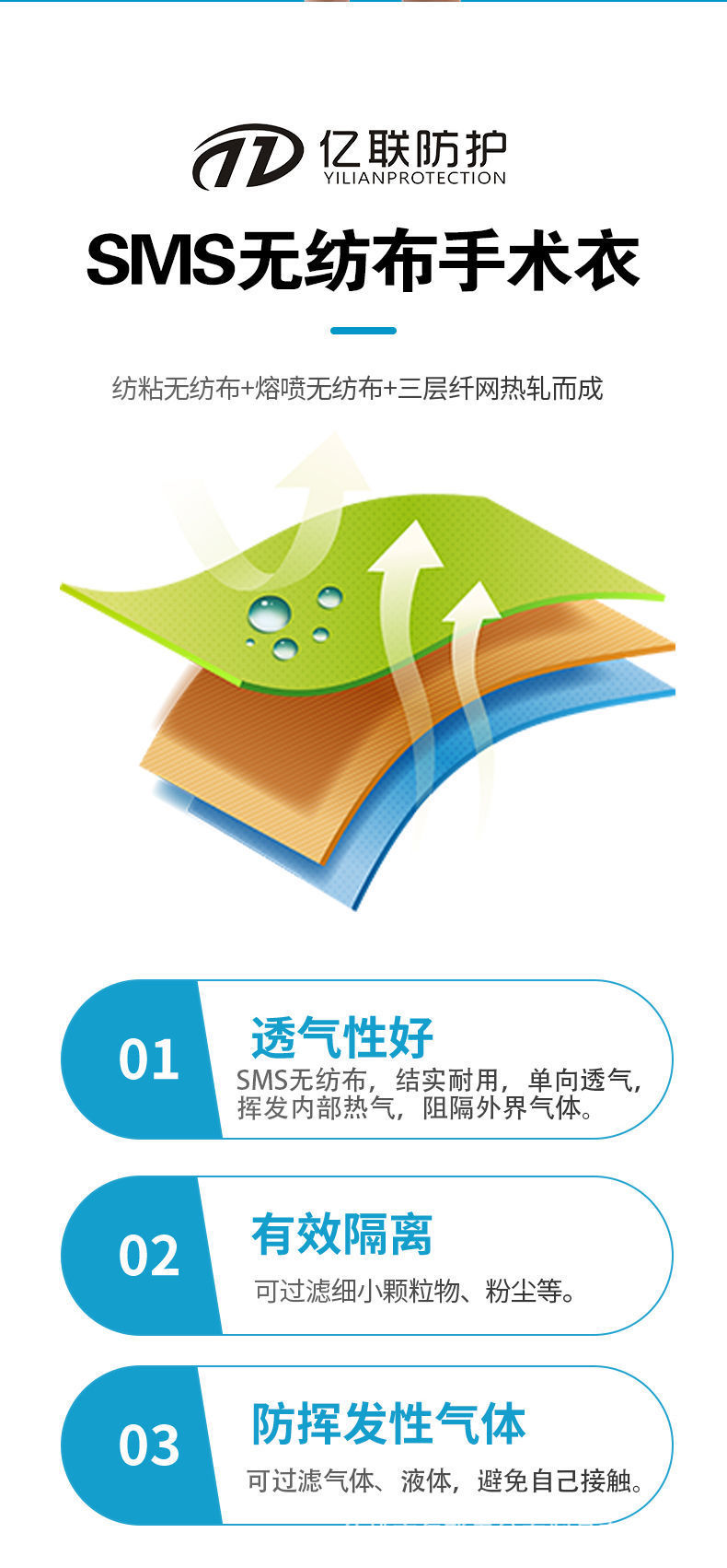使い捨て手術衣、逆着用タイプ、不織布、厚手、防塵、SMS保護服、個別包装、隔離服、卸売