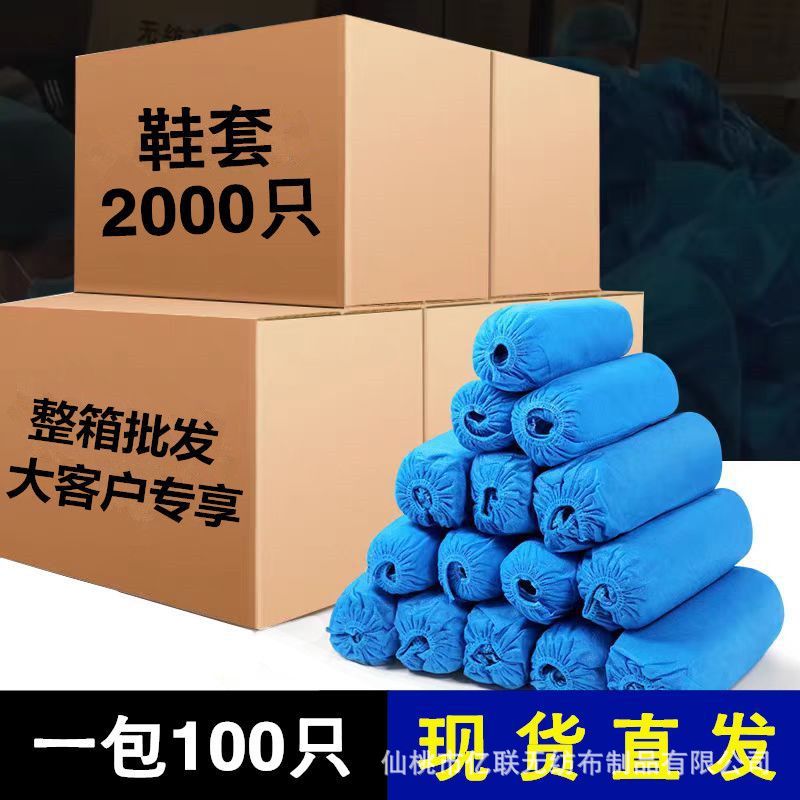 不織布使い捨て靴カバー 不織布厚手通気性機械印刷半筋青色清掃日用品家庭用