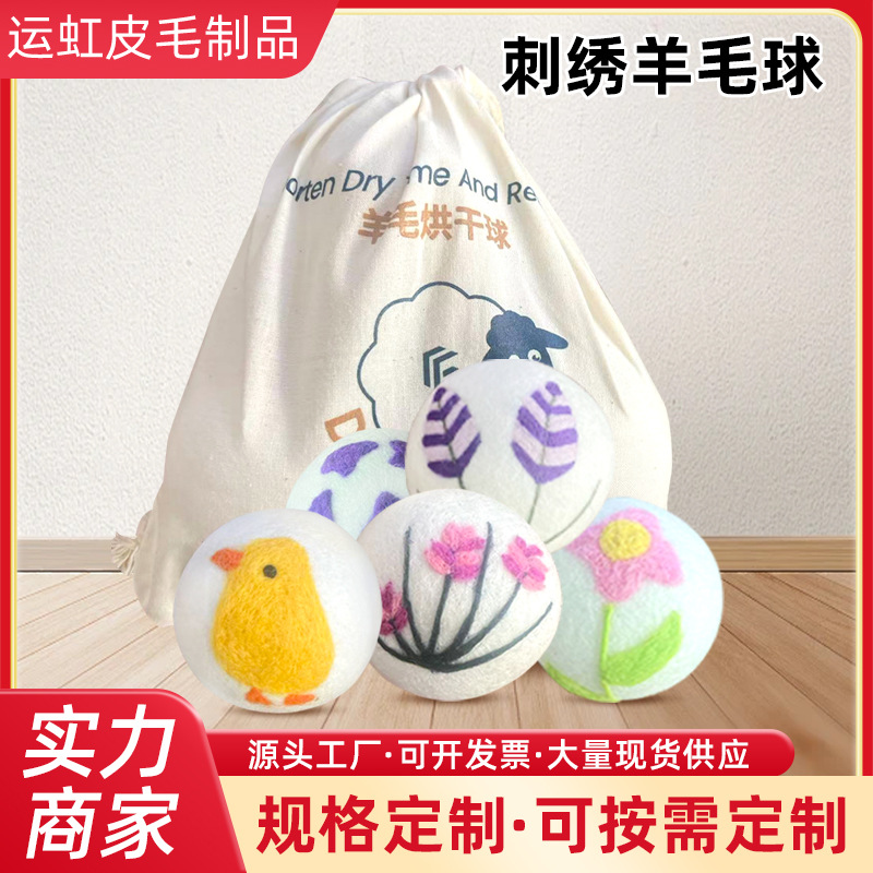 跨境刺绣羊毛球防静电干燥球防缠绕羊毛球7.5cm毛毡洗衣球羊毛球