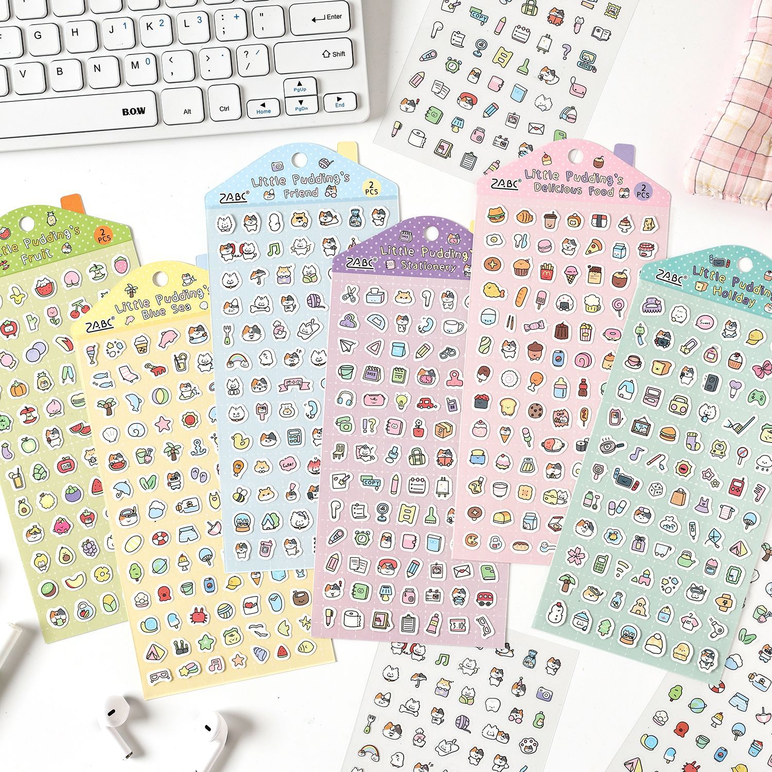 跨境专供新品小布丁日常闪砂膜创意贴纸 儿童手账素材diy贴画批发